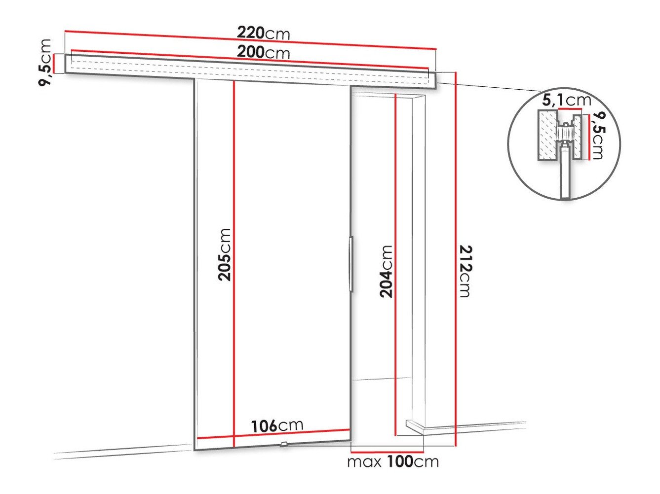 Dimensions du système de portes coulissantes: