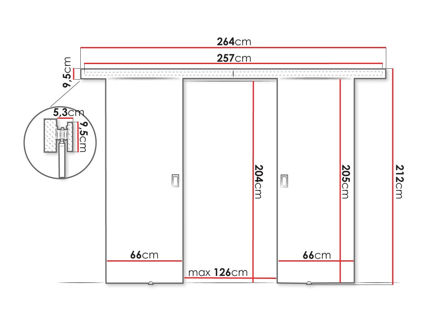 Dimensions du système de portes coulissantes: