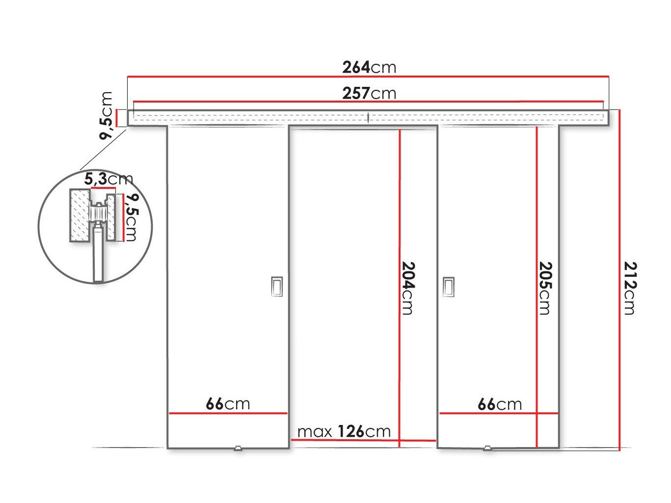Dimensions du système de portes coulissantes: