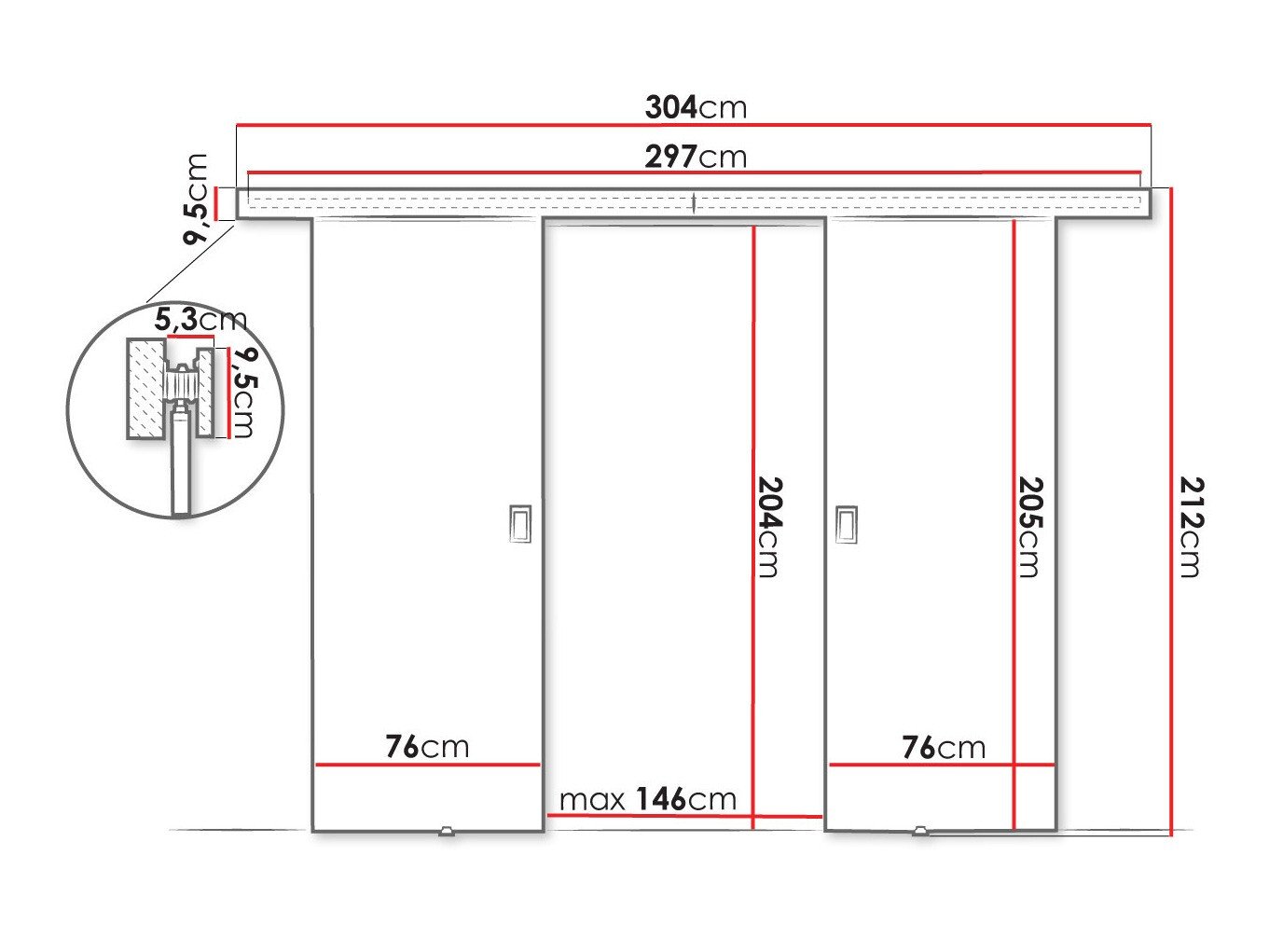 Dimensions du système de portes coulissantes:
