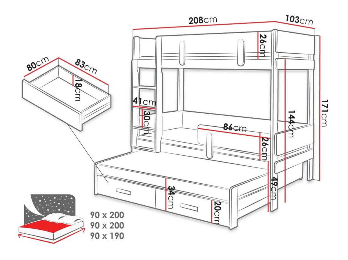 - 90 x 190 cm