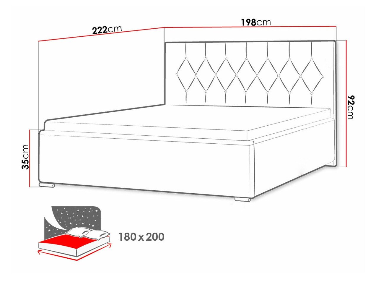 - 180 x 200 cm