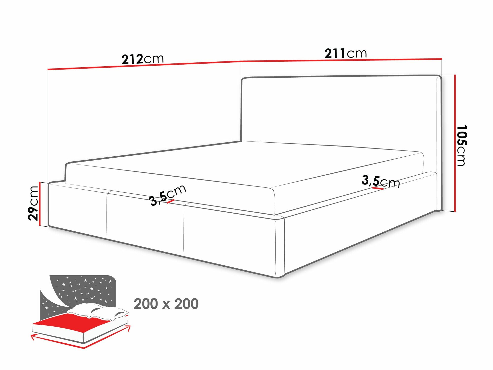 - Le fond de la boîte à literie est en tissu