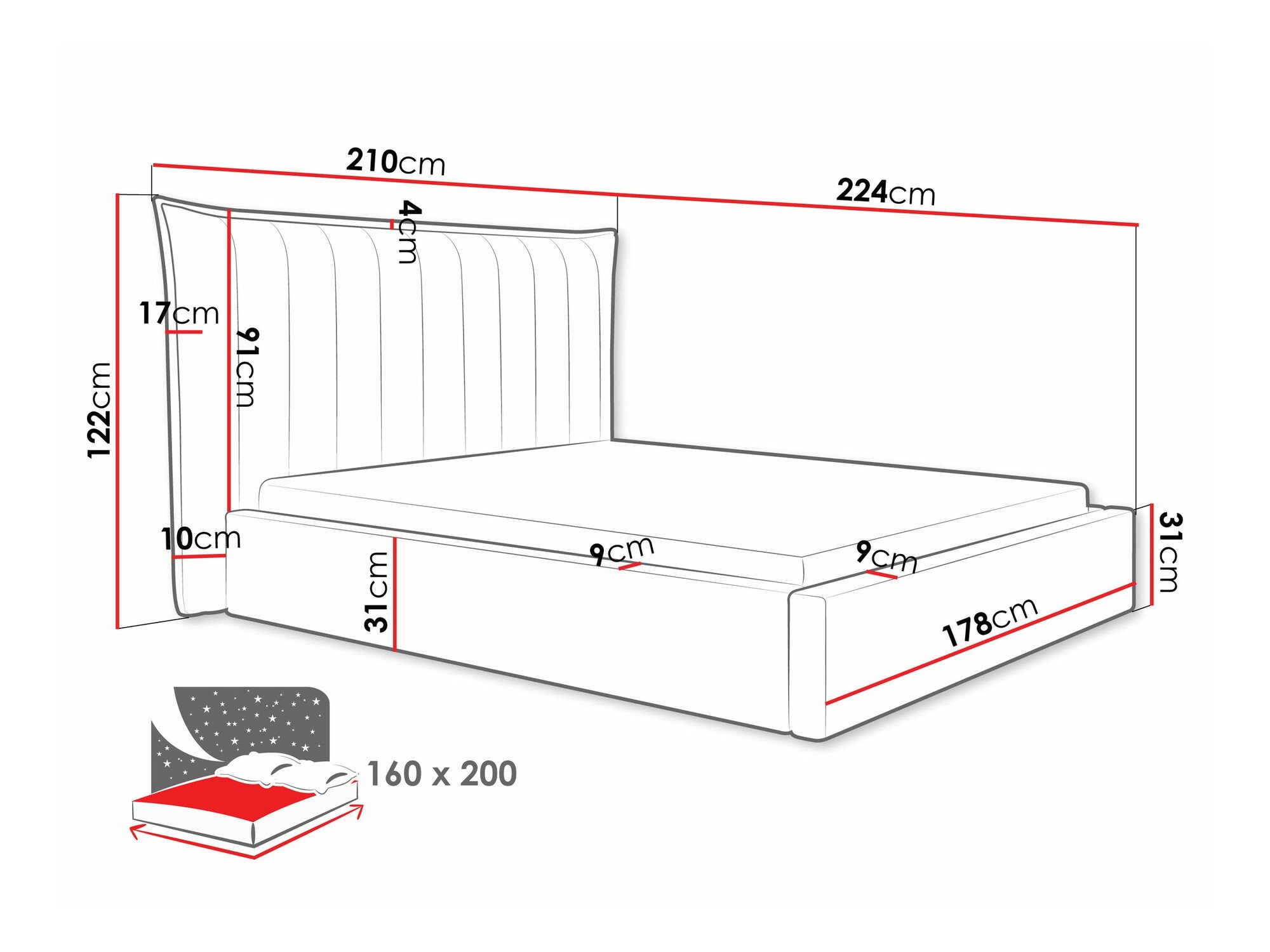 - 160 x 200 cm
