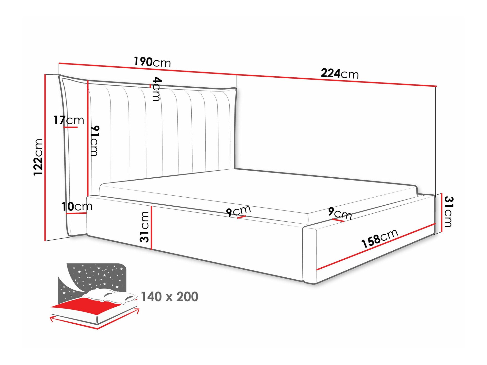 - 140 x 200 cm