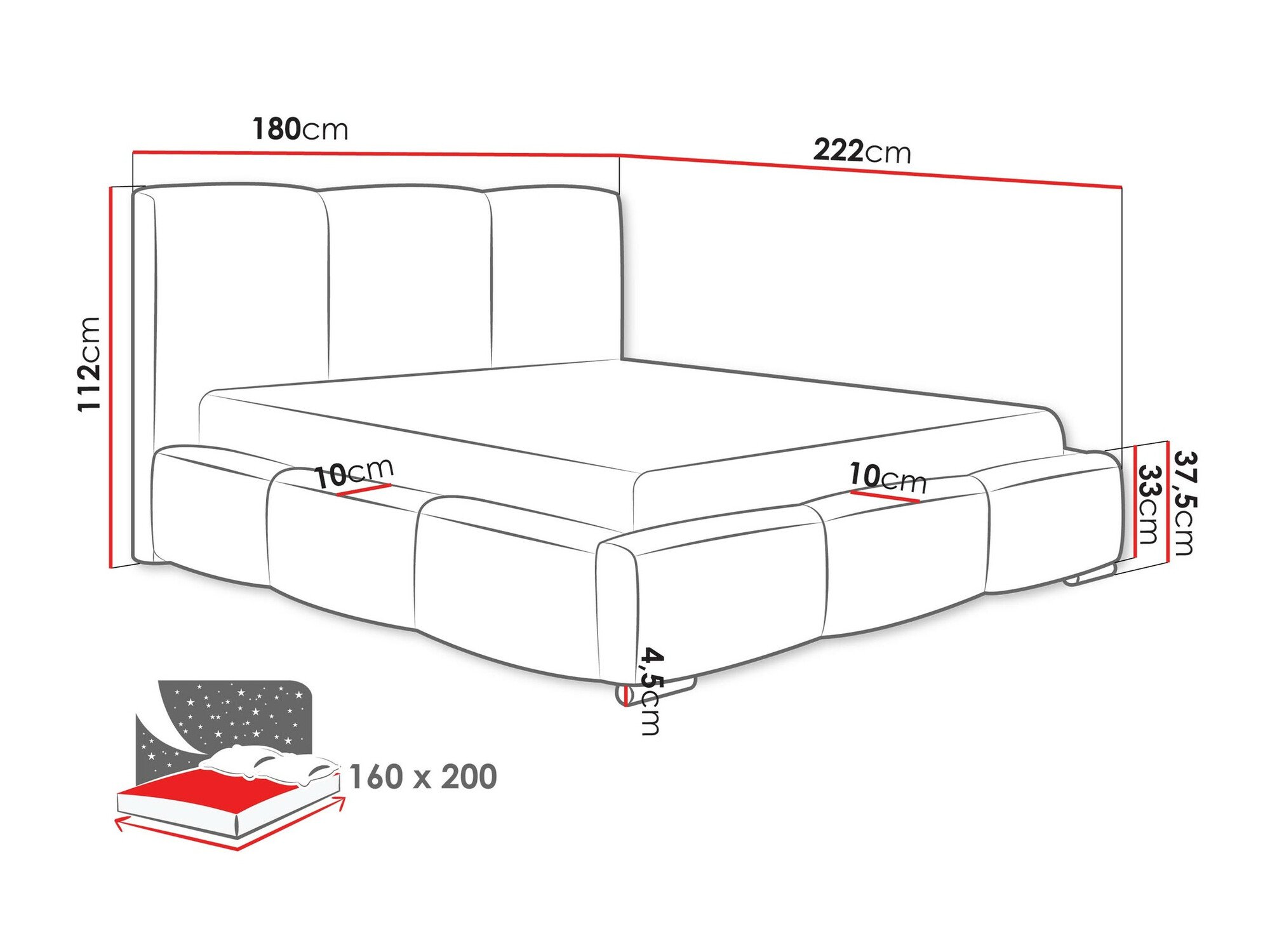 16 x 160 x 200 cm
