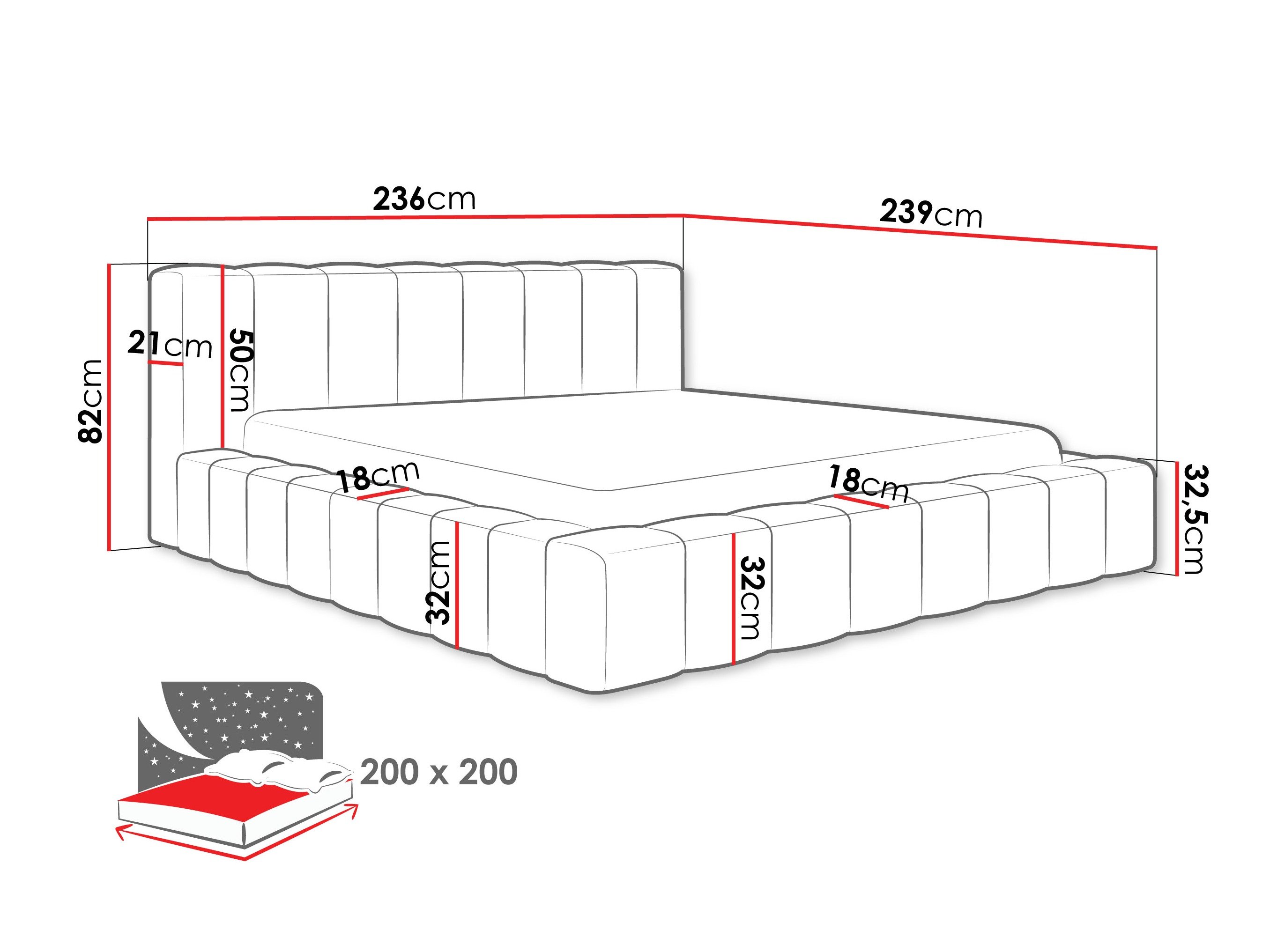Dimensions de la boîte à literie: