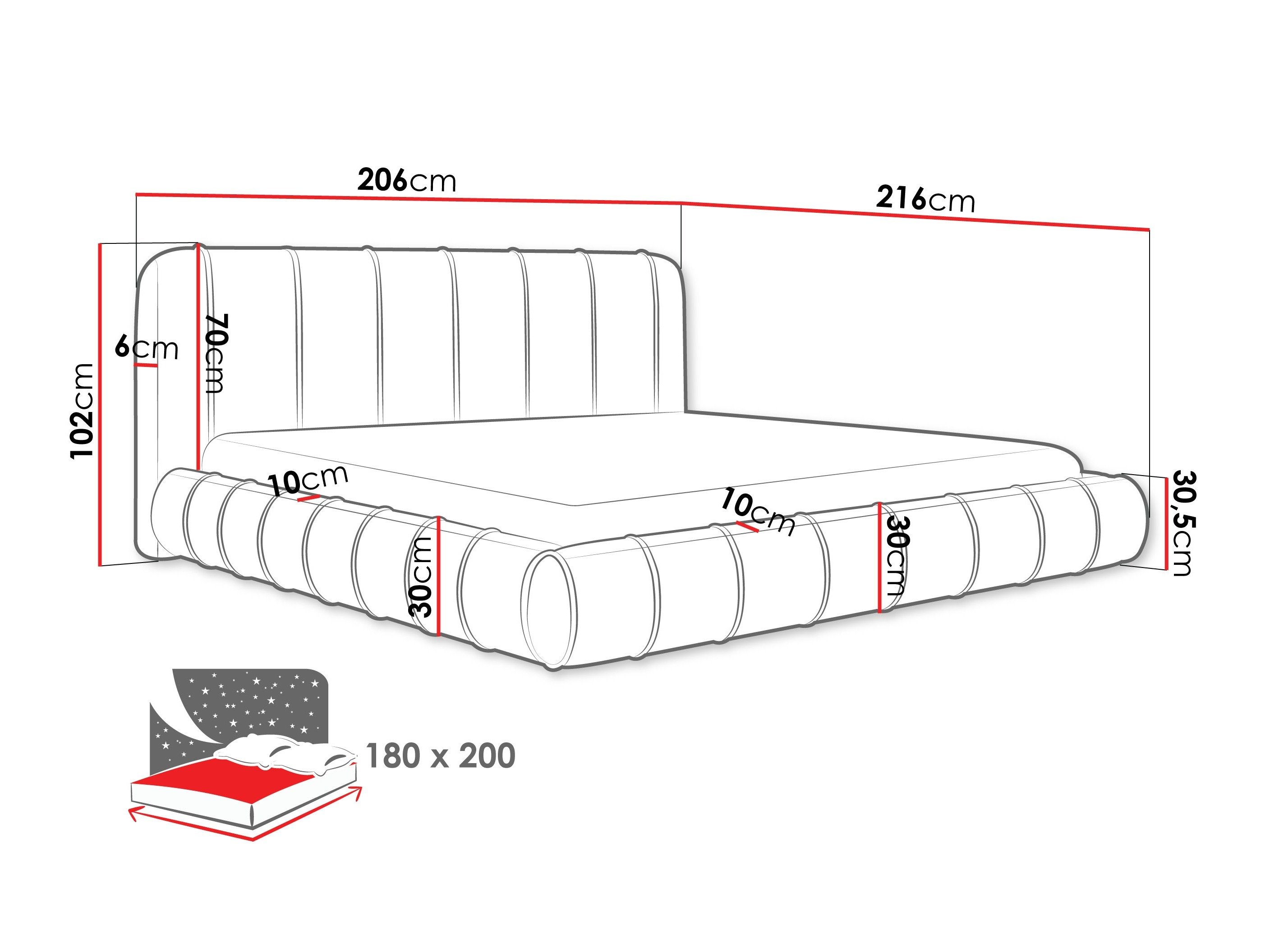 28 x 180 x 200 cm