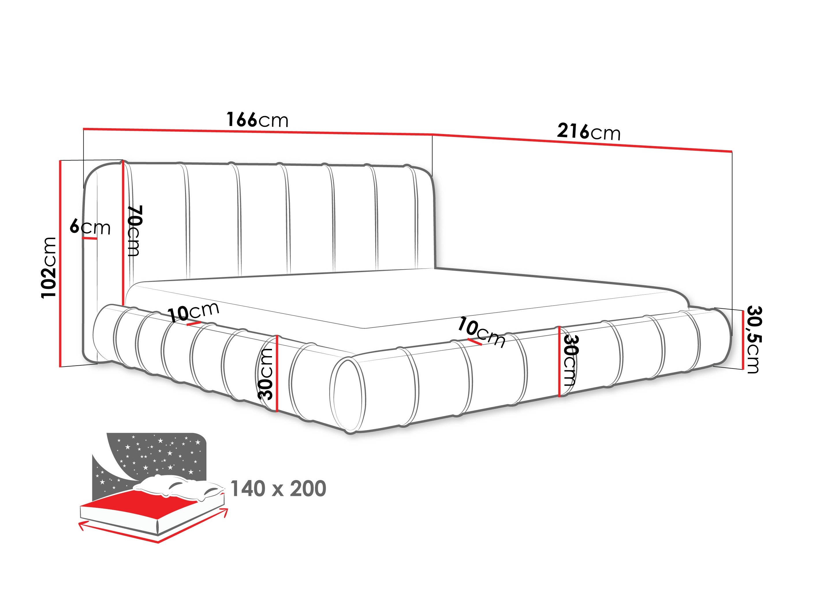 28 x 140 x 200 cm
