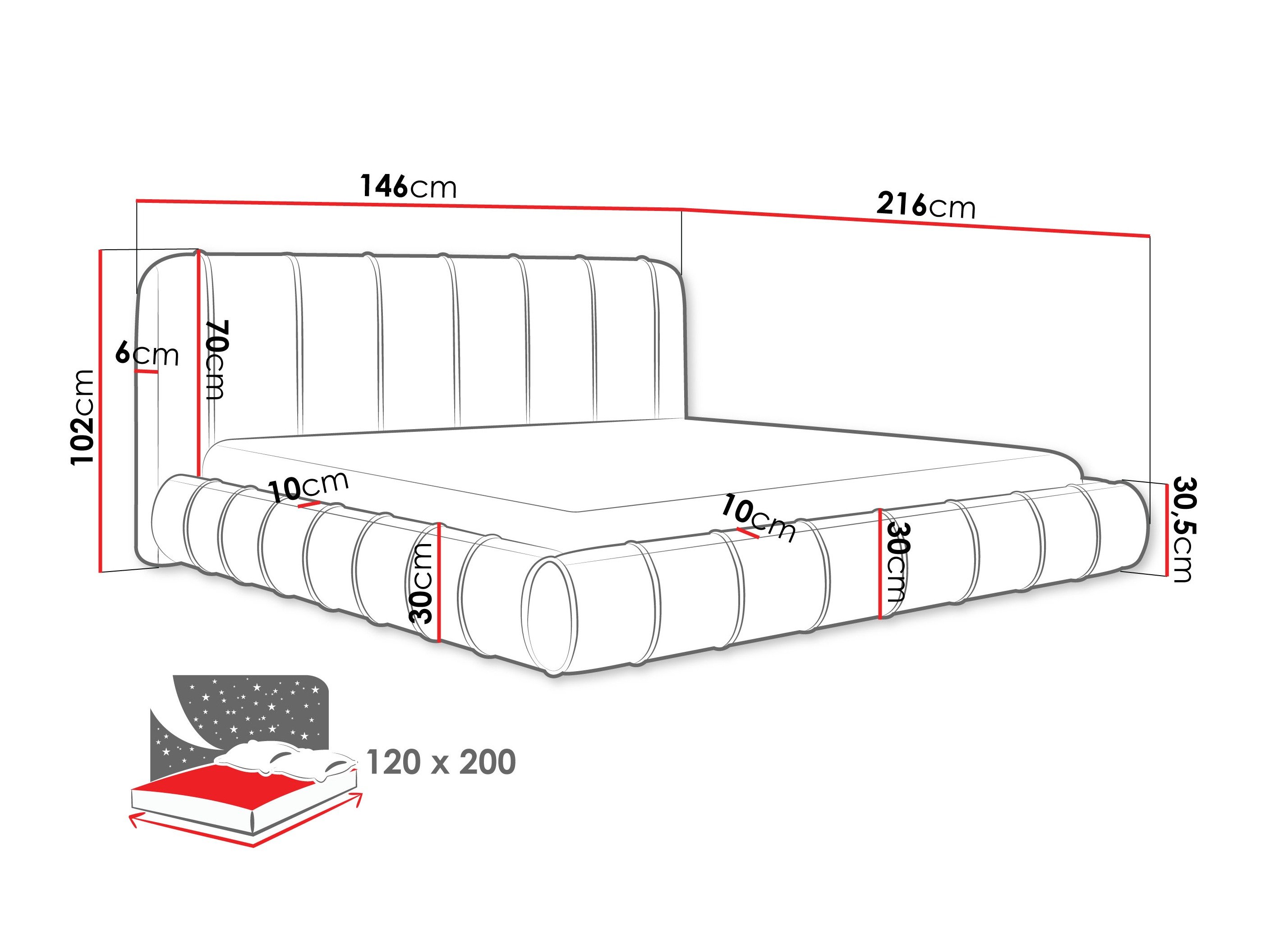 Dimensions de la boîte à literie: