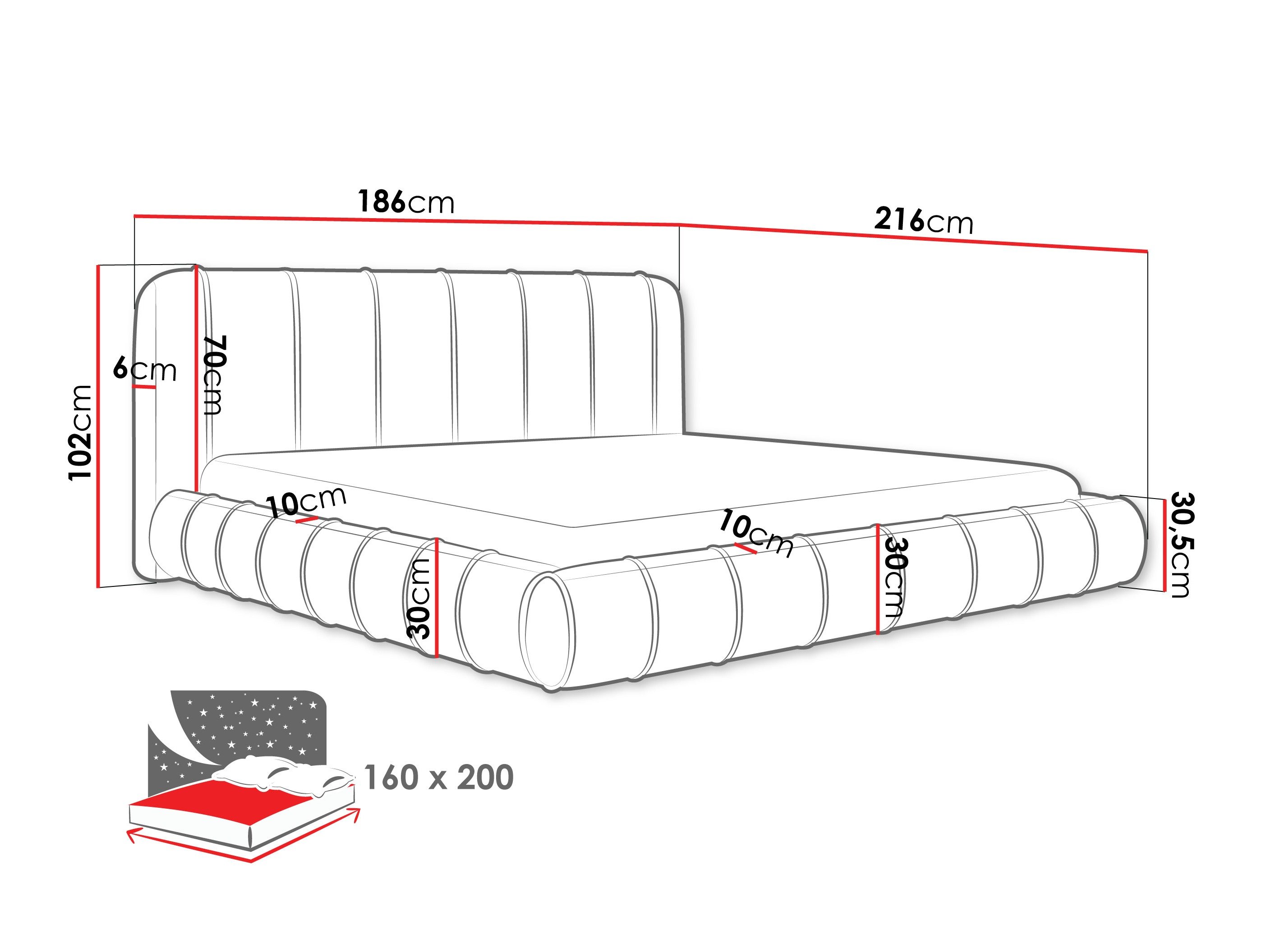 28 x 160 x 200 cm