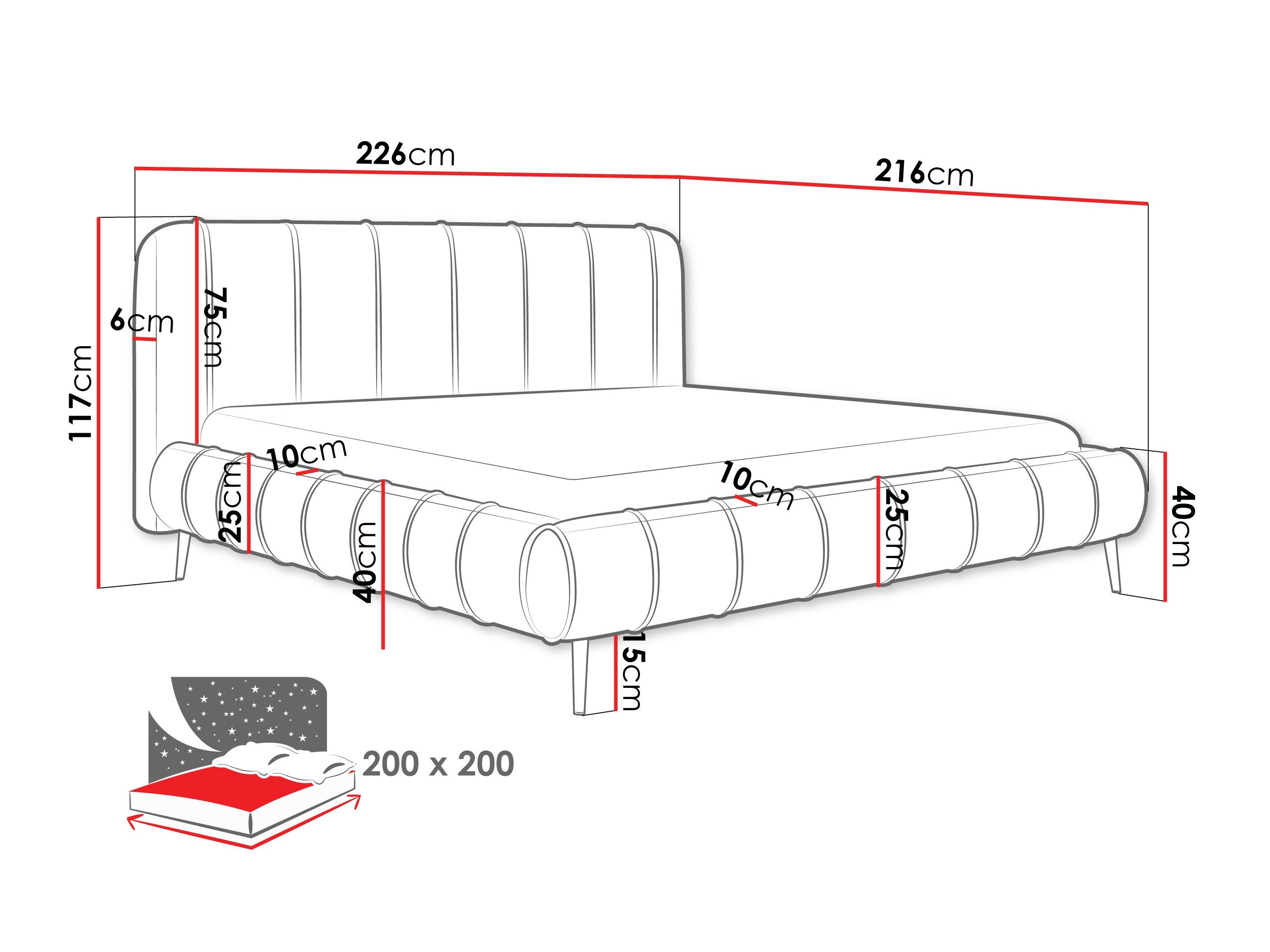 Dimensions de la boîte à literie: