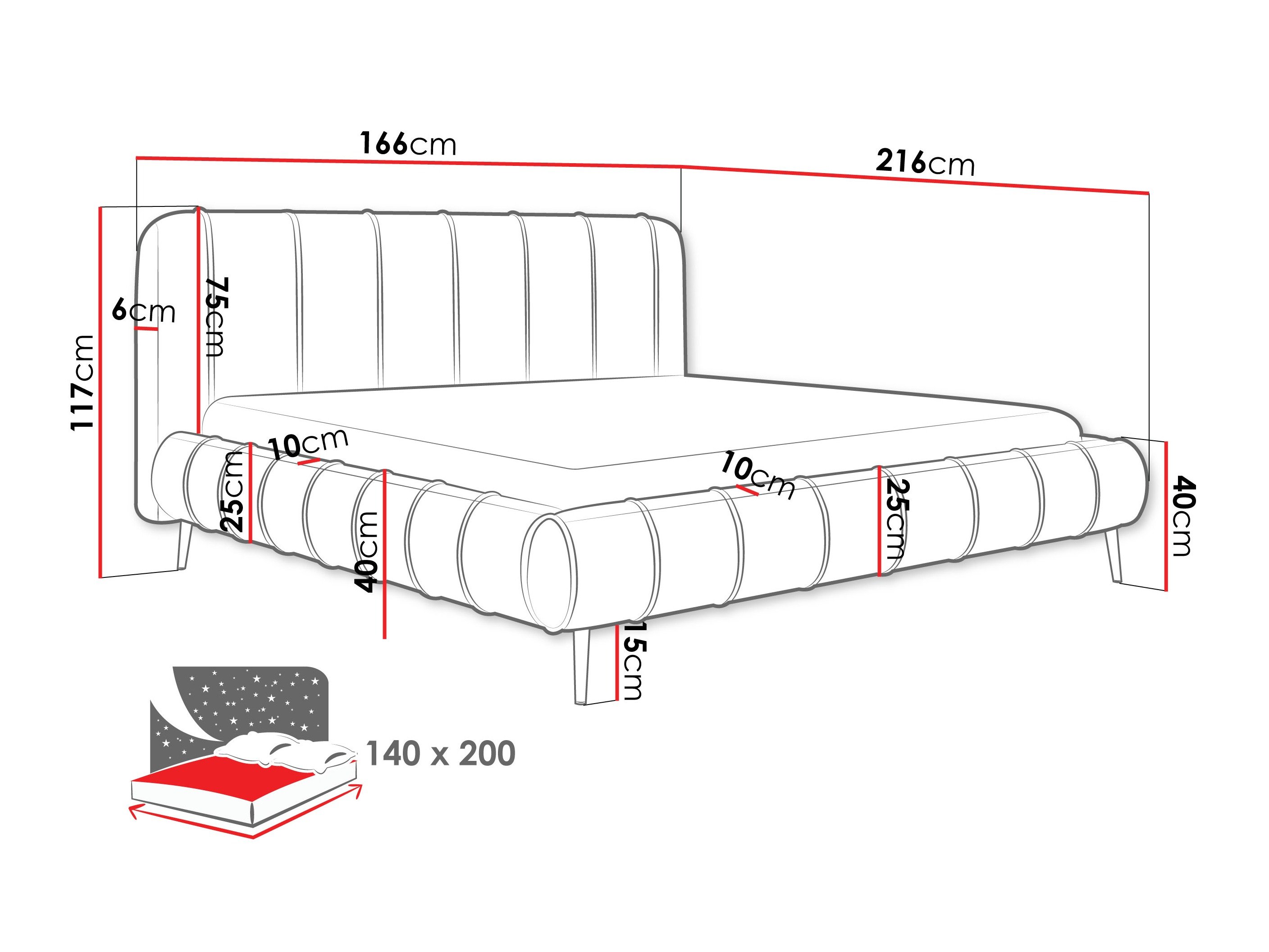 23 x 140 x 200 cm