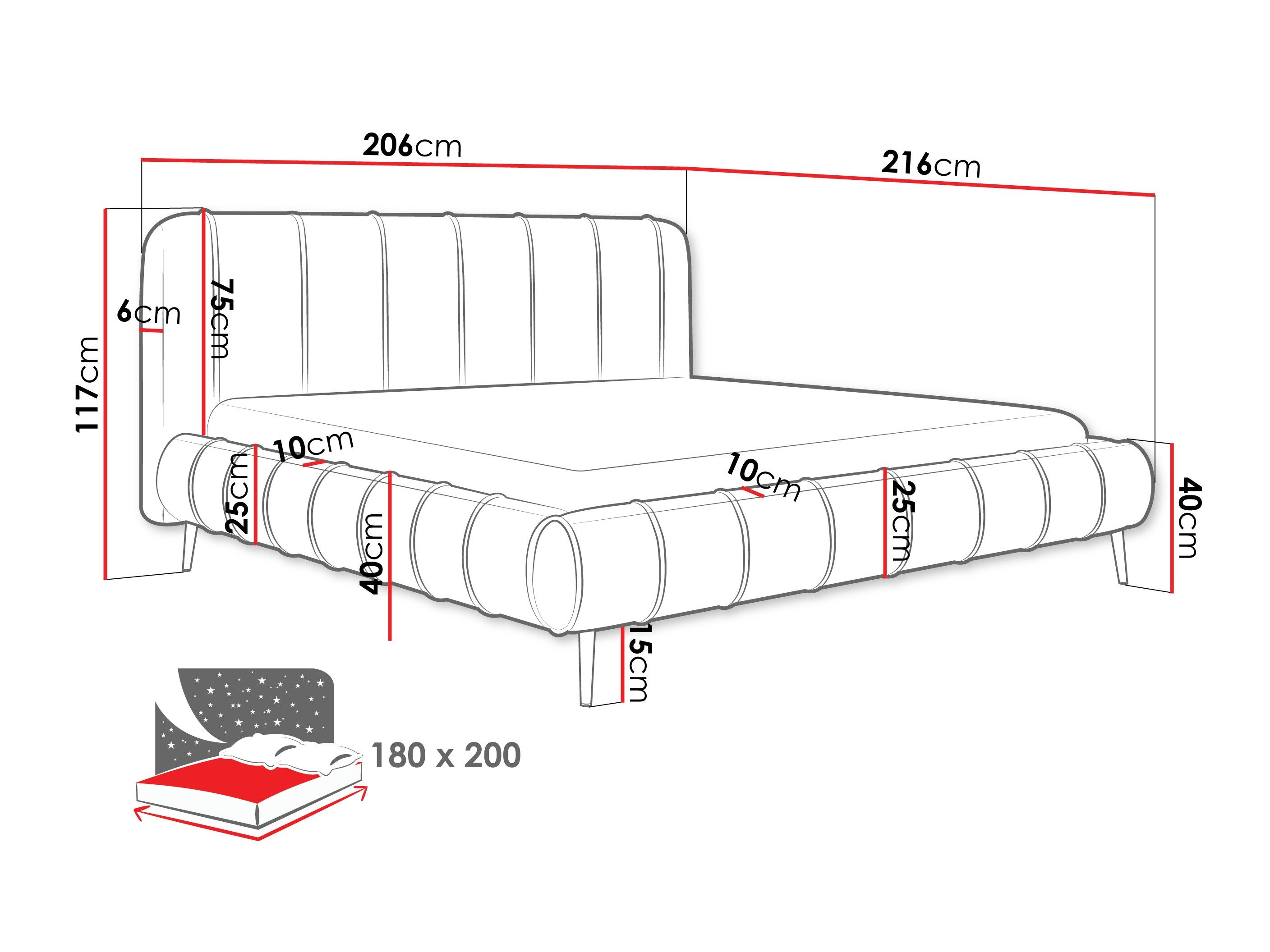 - 180 x 200 cm