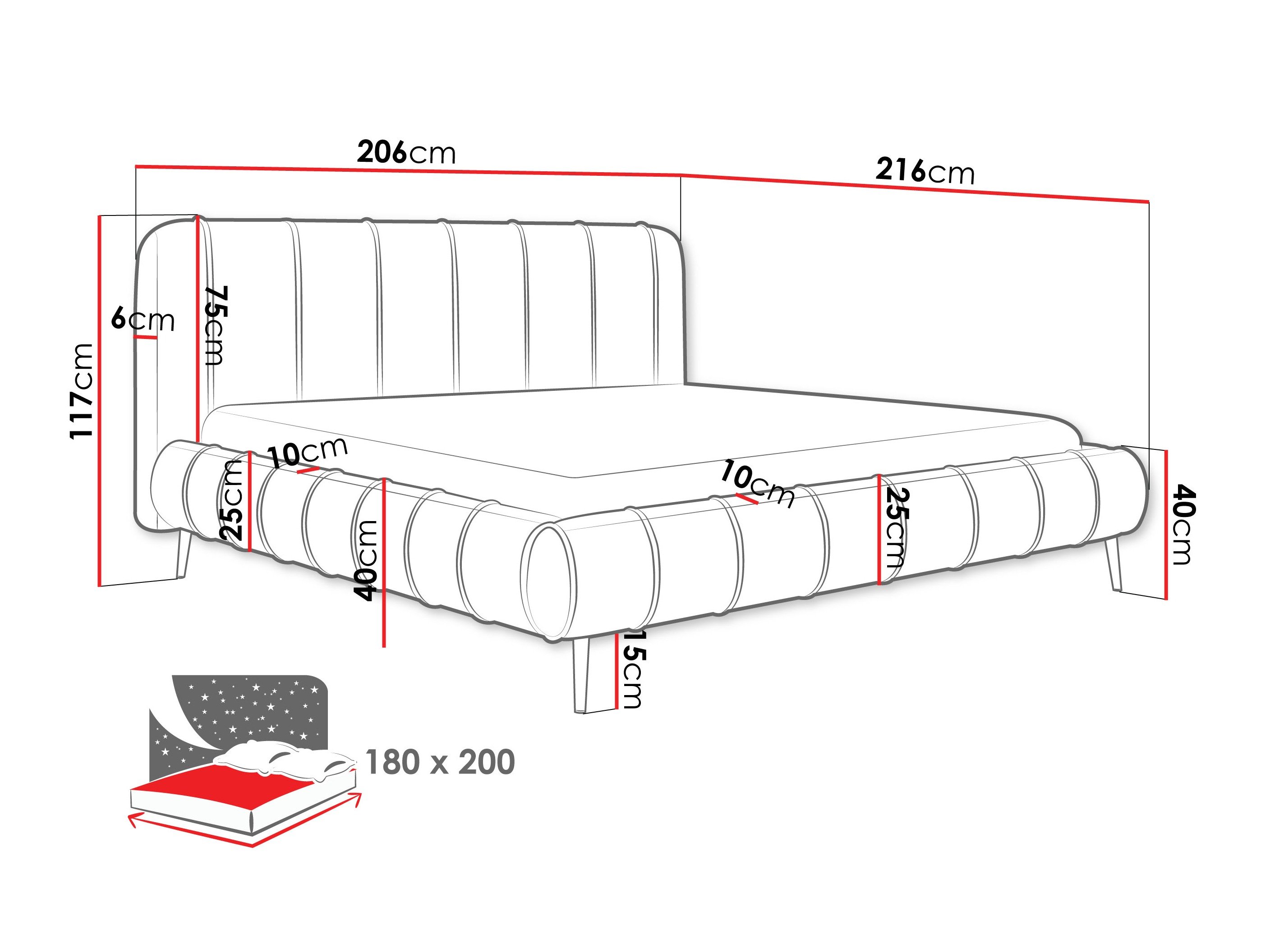 - 180 x 200 cm