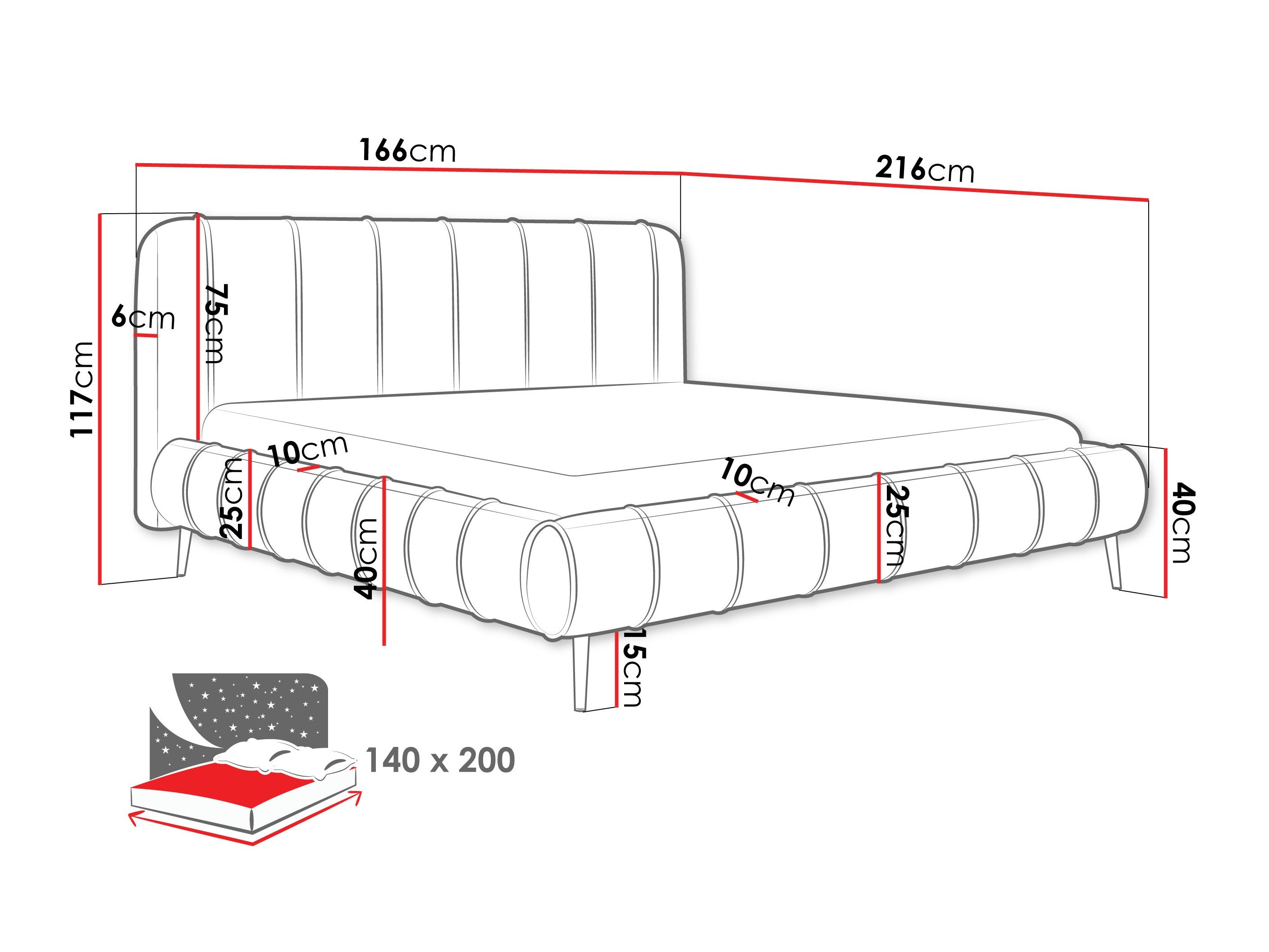 23 x 140 x 200 cm