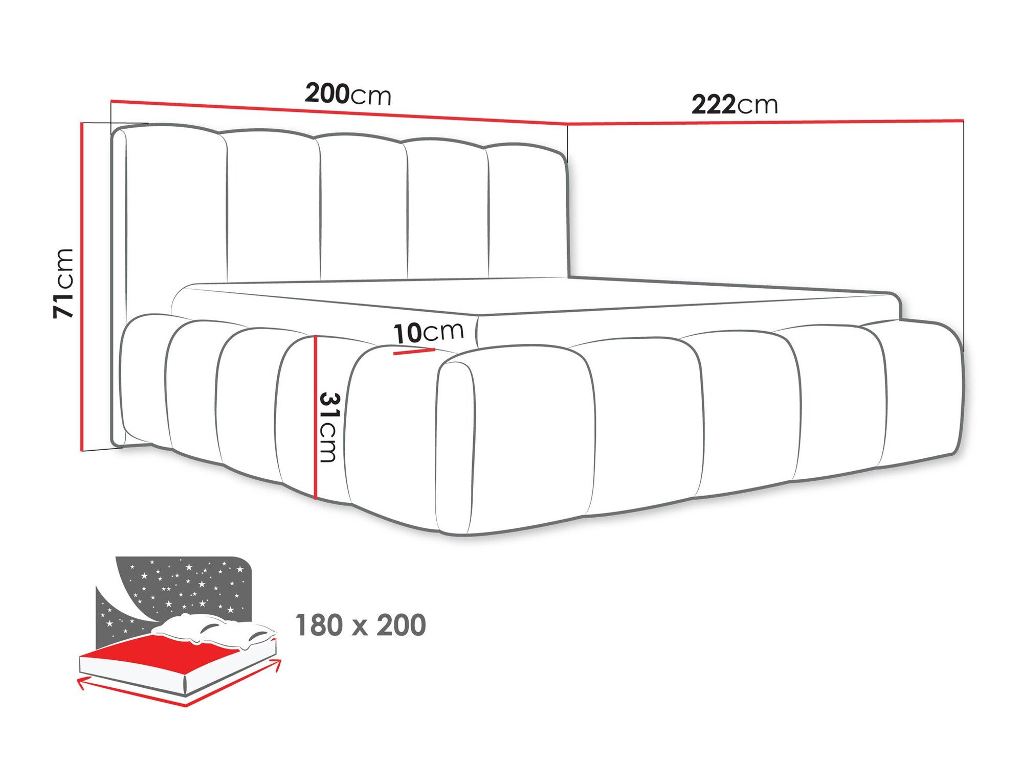 Dimensions de la boîte à literie: