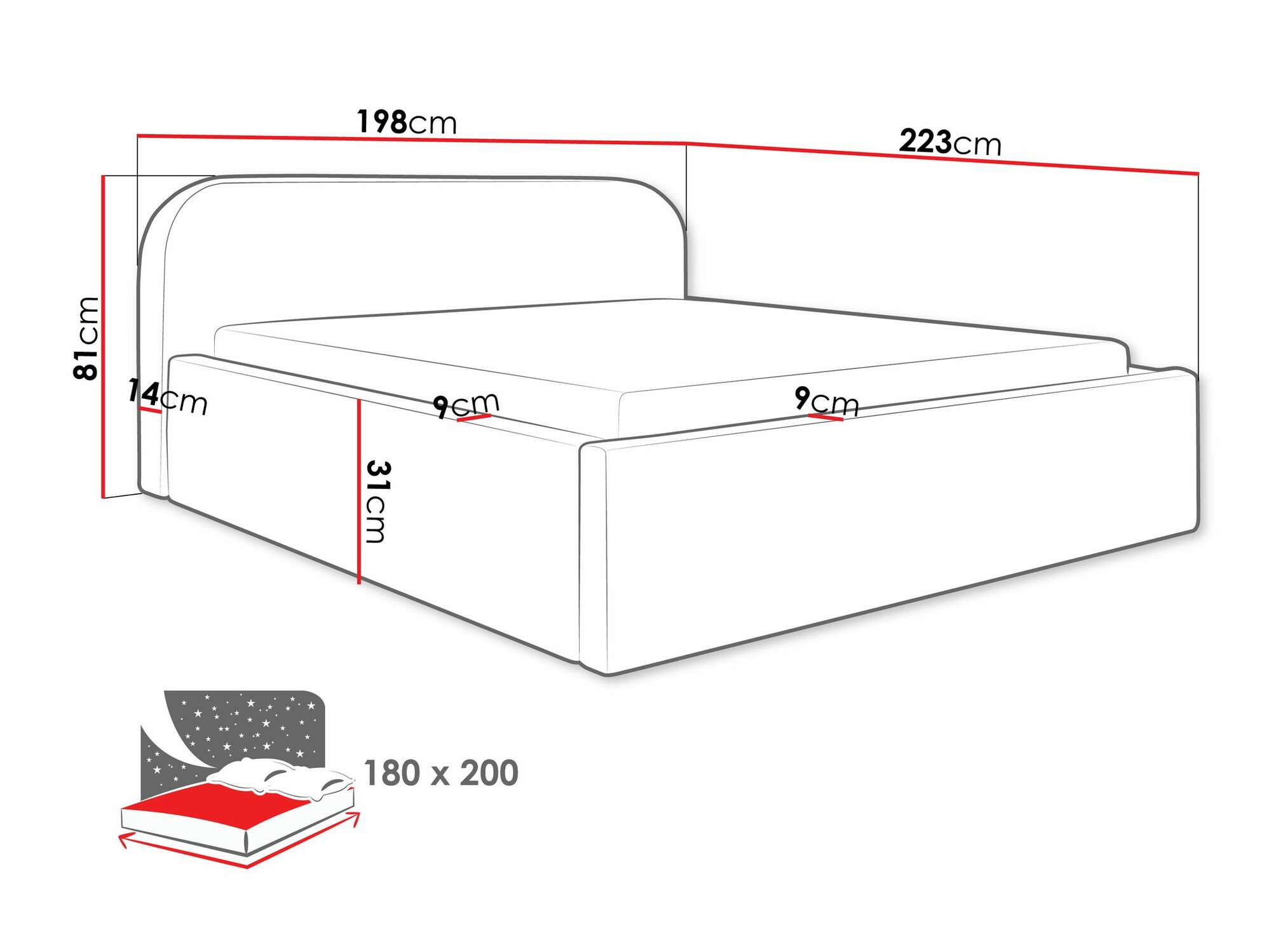- 180 x 200 cm