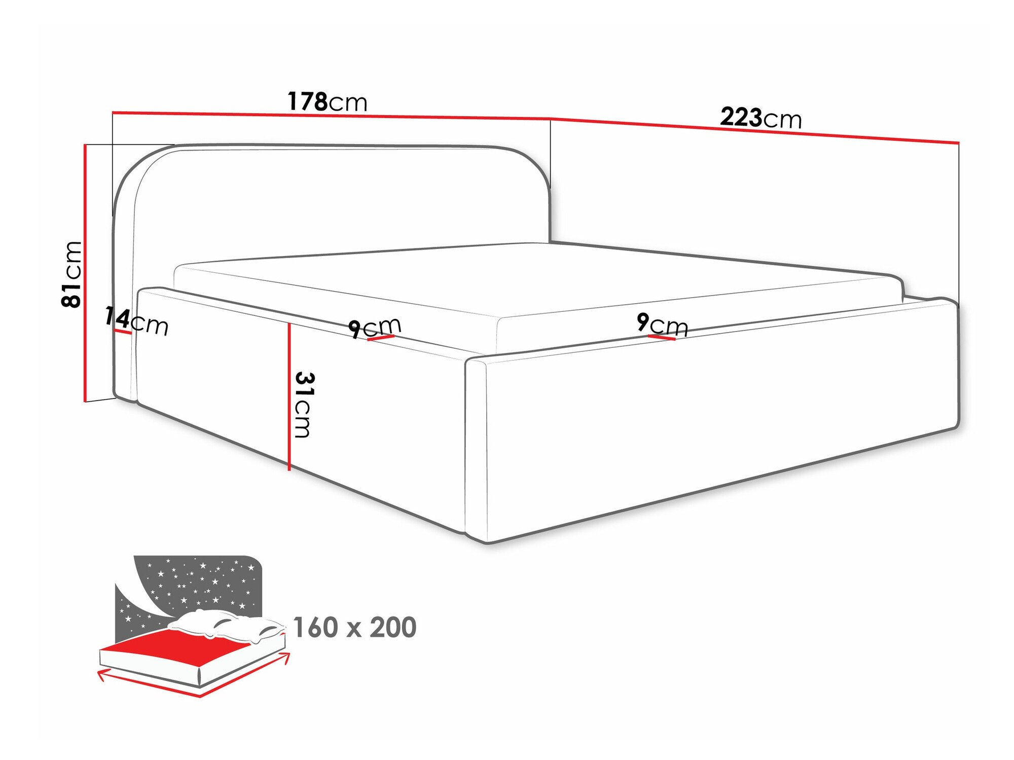 16 x 160 x 200 cm