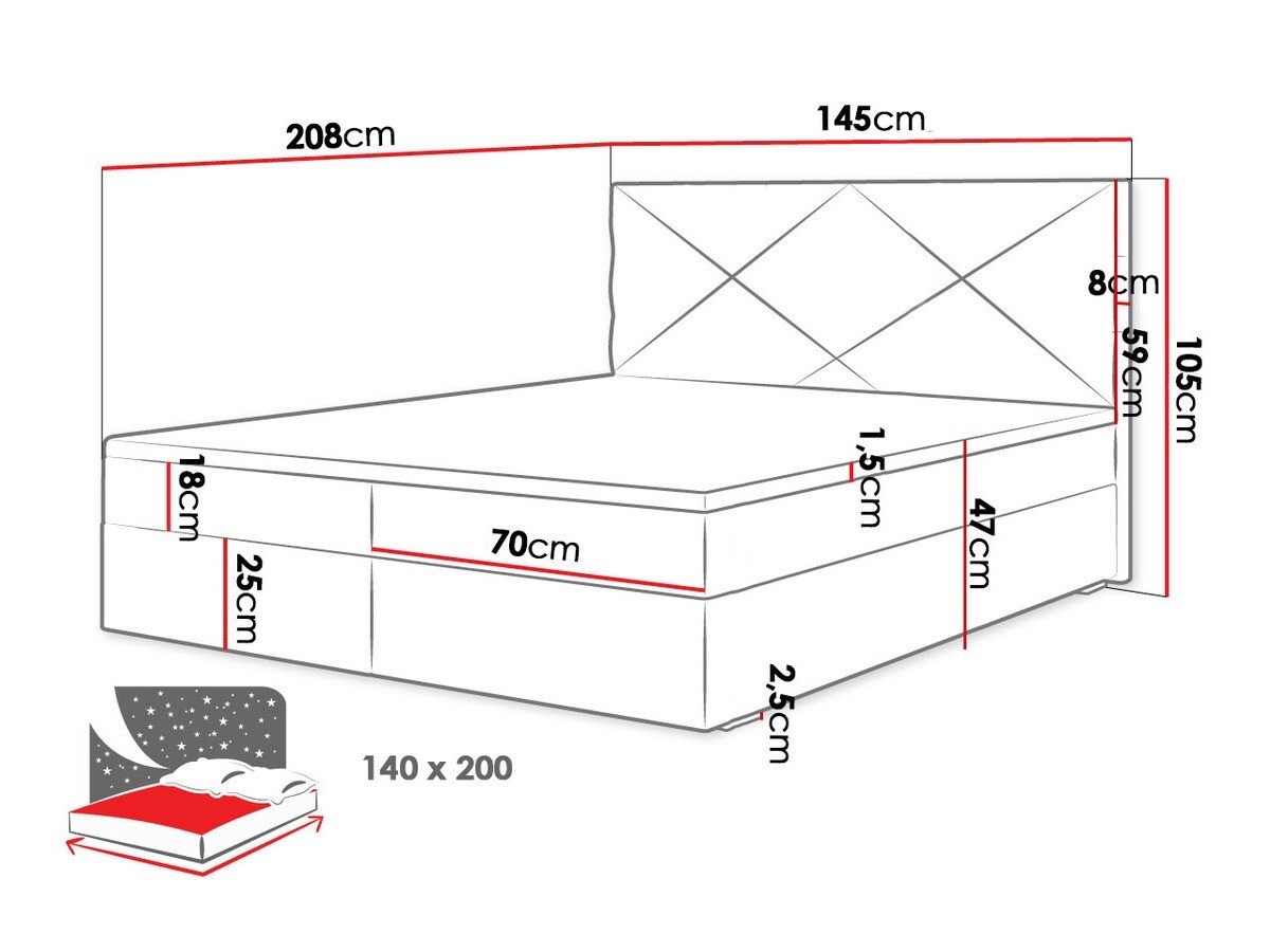 Dimensions de la boîte à literie: