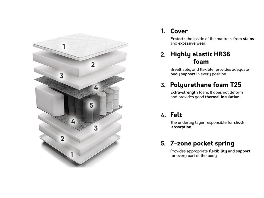 - 7 matelas à 7 zones de dureté