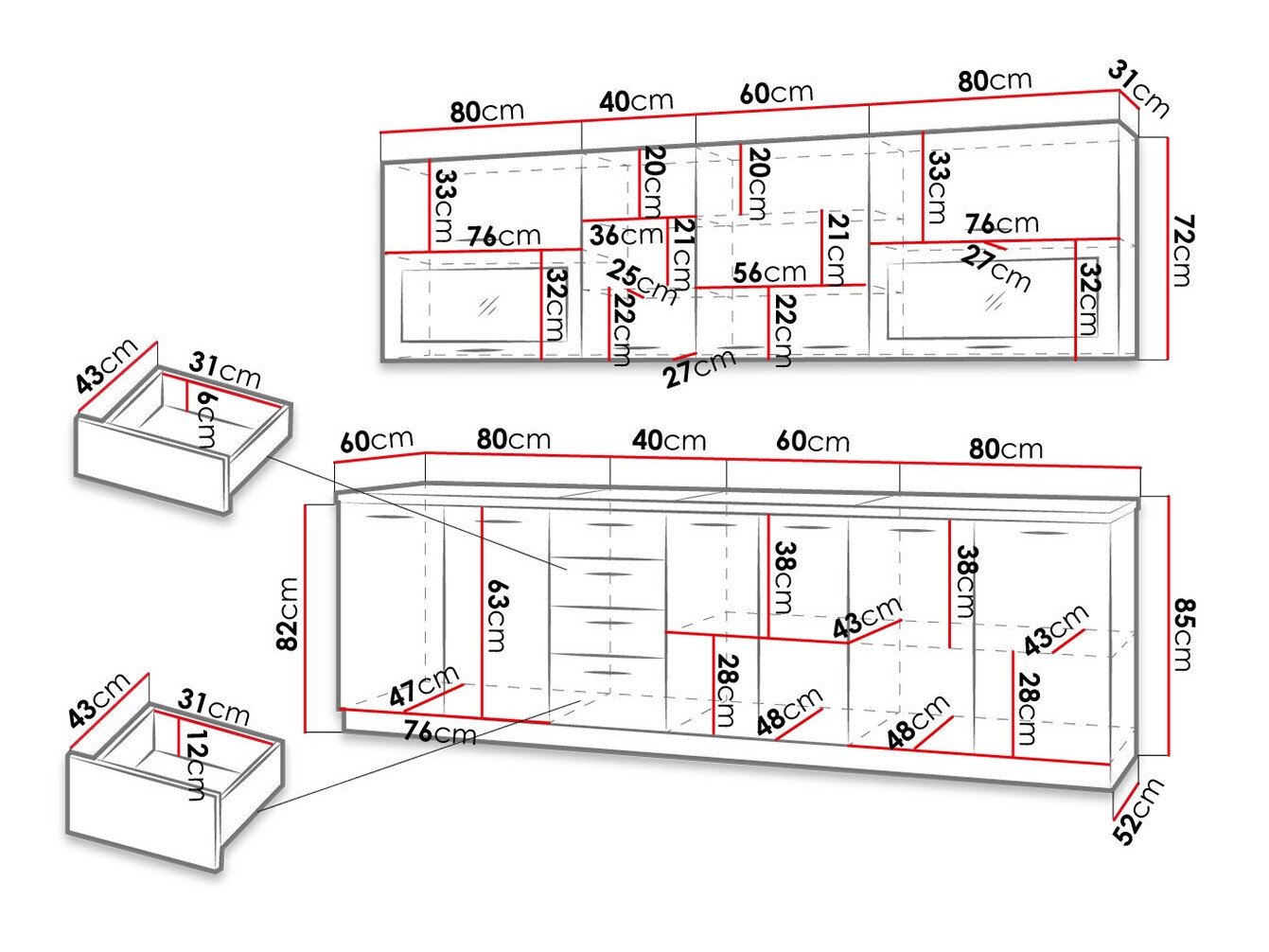 Hauteur de l'armoire à poser: