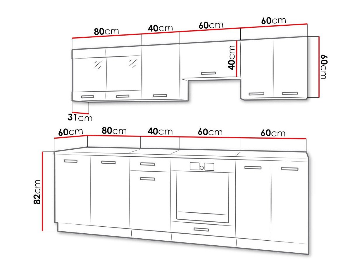 Les meubles de cuisine peuvent souvent être achetés en tant qu'ensemble ou en combinant les armoires séparément. Dans les deux cas, il y a un espace derrière chaque meuble de cuisine le long du mur, destiné à la tuyauterie. La profondeur des armoires pour les appareils encastrés et les meubles d'angle est plus importante, car ces armoires n'ont pas d'espace pour la tuyauterie. Cet espace est caché par le plan de travail. Si les armoires sont vendues sans comptoir, celui-ci doit être acheté et fixé séparément. Les comptoirs sont fixés à l'aide de vis et sont vendus sans zones prédécoupées pour les éviers ou les tables de cuisson. Lors de l'achat d'une armoire d'angle, il est essentiel d'acheter un connecteur de comptoir afin d'éliminer tout espace dans l'angle.