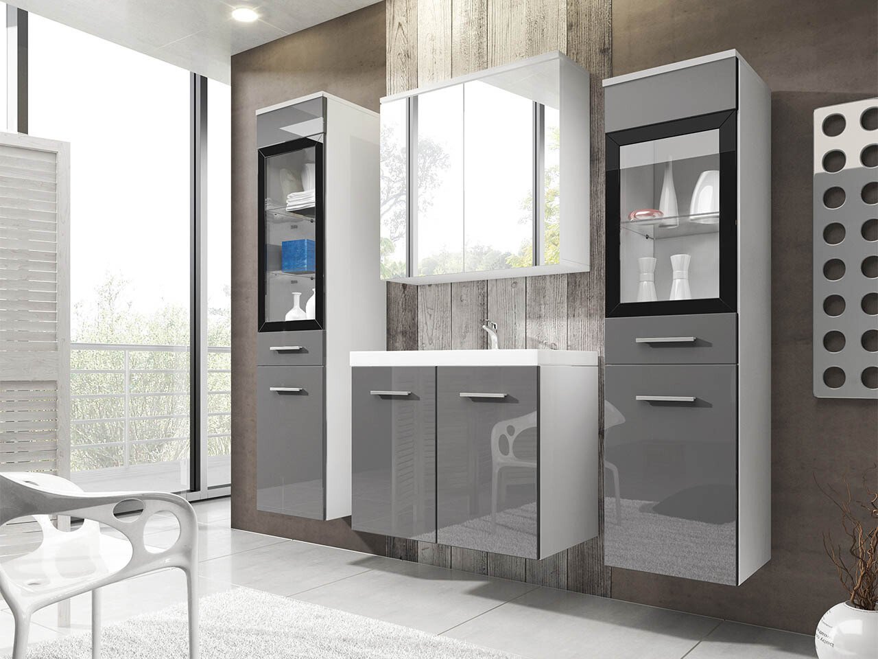 Ensemble de salle de bain Scientia III (Gris brillant + Blanc)