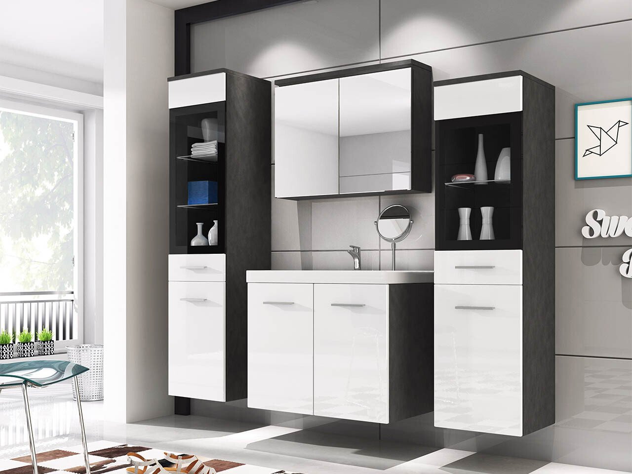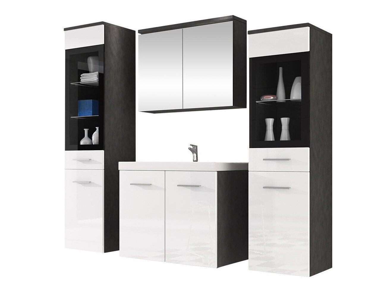 Ensemble de salle de bain Scientia III (Blanc brillant + Matera gris)
