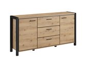 Cette collection est conçue pour les amateurs d'intérieurs industriels. Les poignées en métal sont combinées avec des façades de couleur chêne clair qui laissent apparaître des traces du grain du bois. La forme des poignées s'intègre parfaitement à l'ensemble du design. Les meubles sont mis en valeur par des bords noirs mats qui soulignent la silhouette stricte des meubles. L'une des principales caractéristiques de la collection est l'espace. Des sections de meubles extrêmement spacieuses feront en sorte que toutes les choses trouvent leur place. Cette collection vous permettra de créer une ambiance intérieure industrielle chez vous sans trop d'efforts. Créez une atmosphère encore plus chaleureuse chez vous en commandant en plus un éclairage LED.