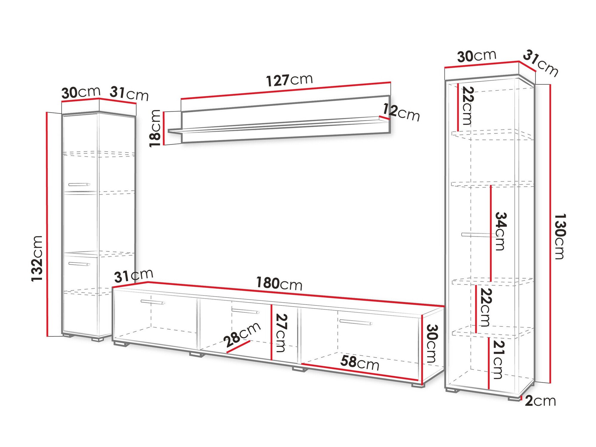 Ensemble de salon Sarasota 175 (Noir + Chêne wotan)