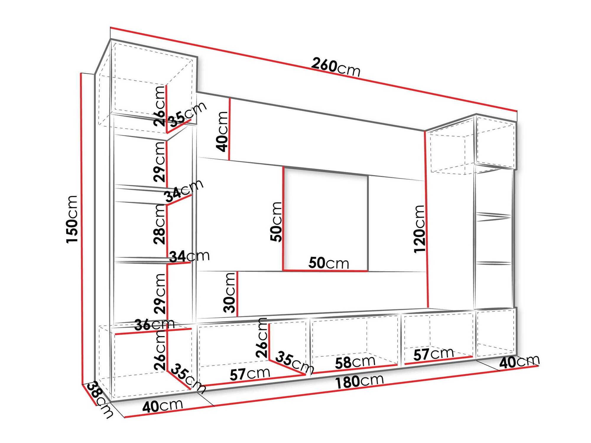 150 x 180 x 38 cm