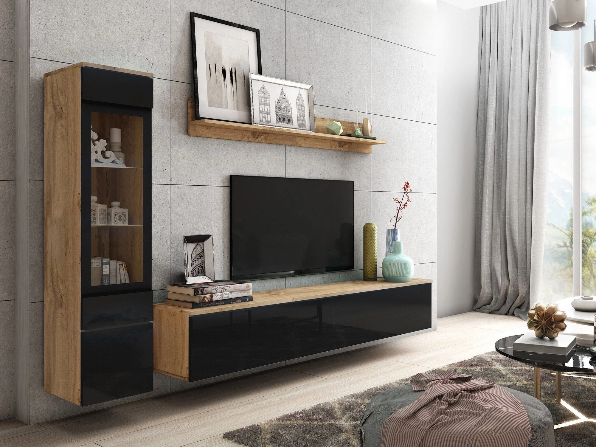 Ensemble de salon Sarasota 125 (Chêne wotan + Noir brillant)