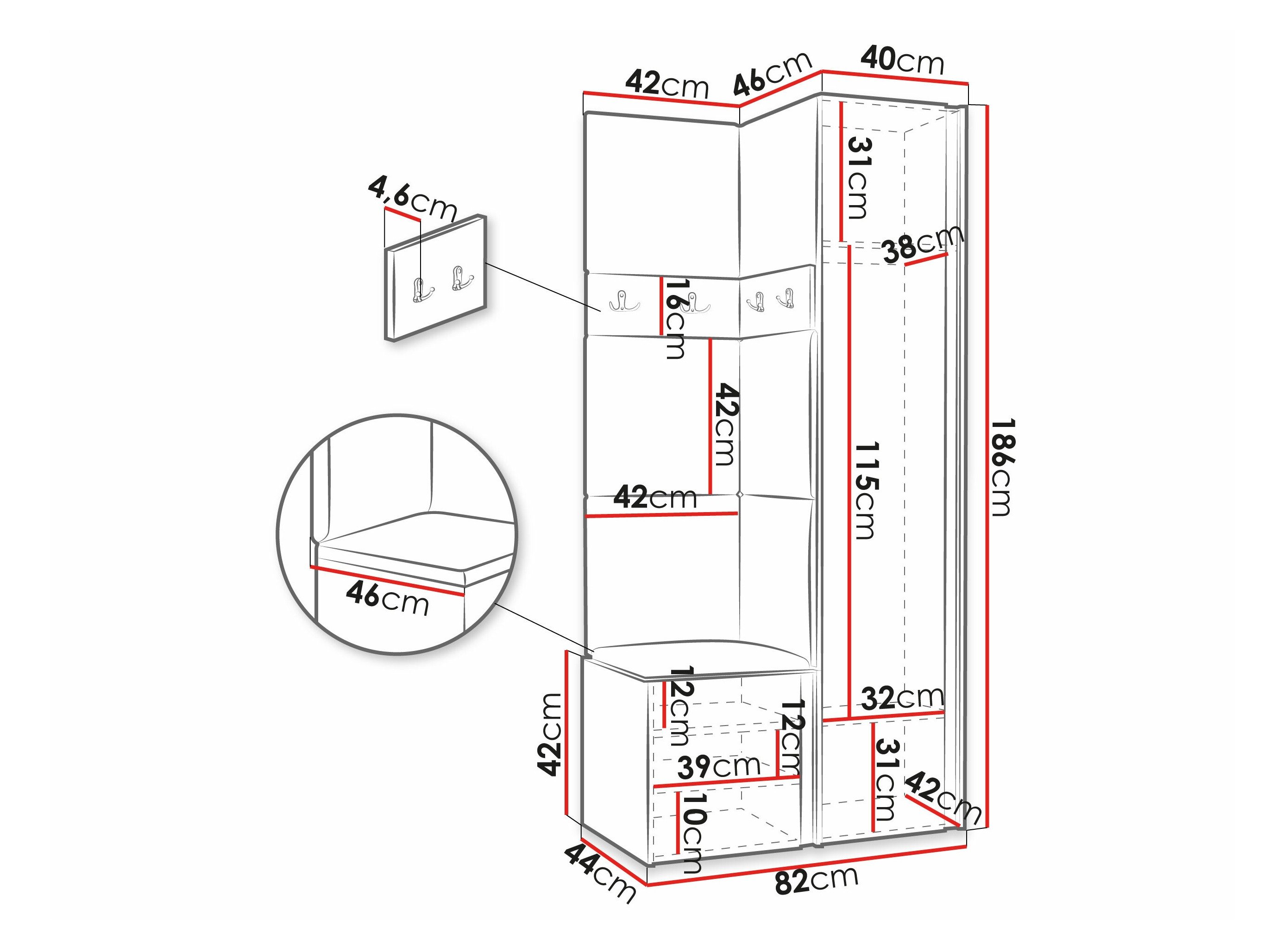 186 cm  42 cm  46 cm