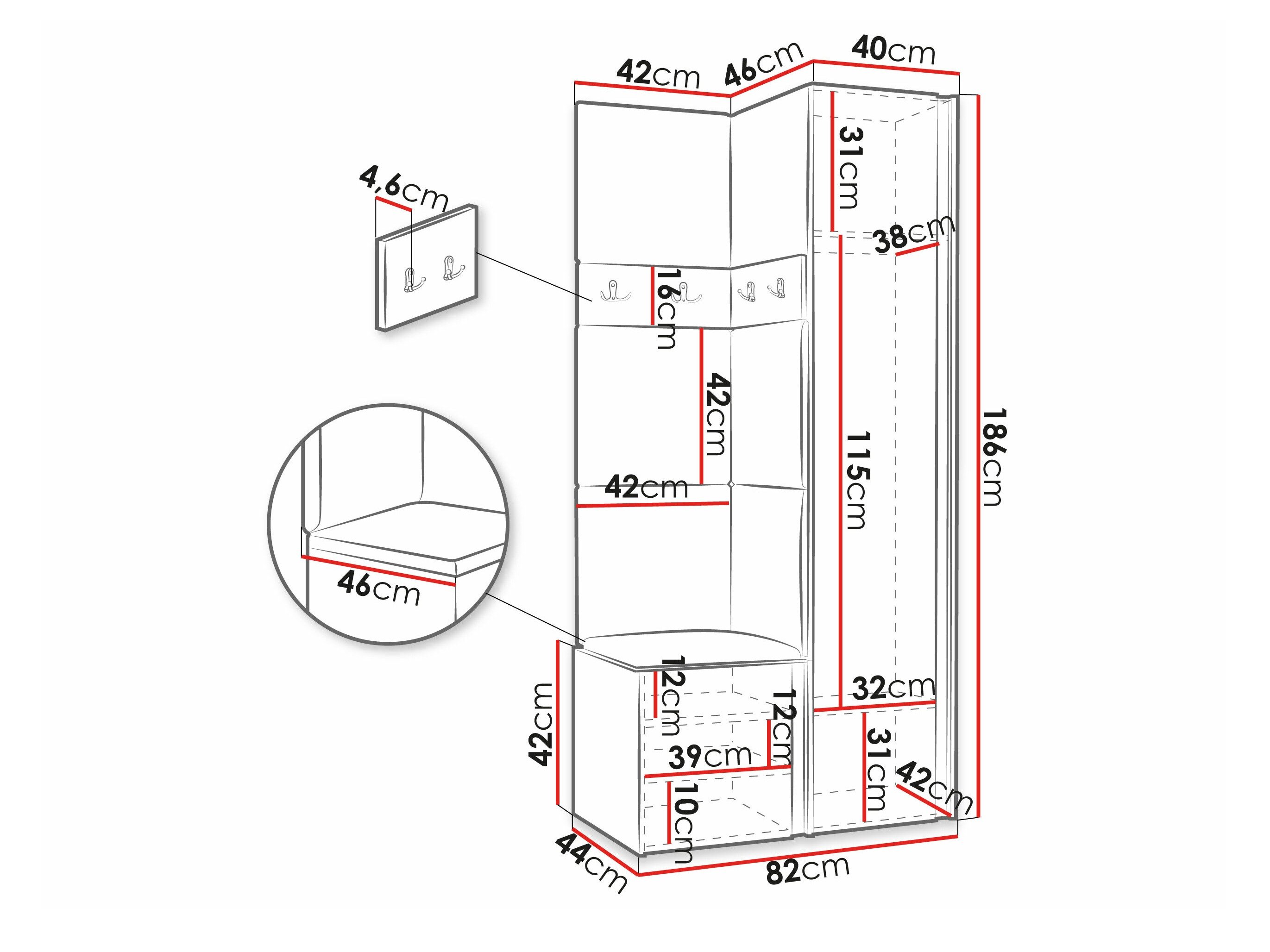 186 x 40 x 46 cm