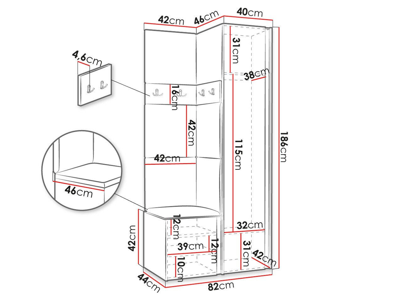 Dimensions du portemanteau:
