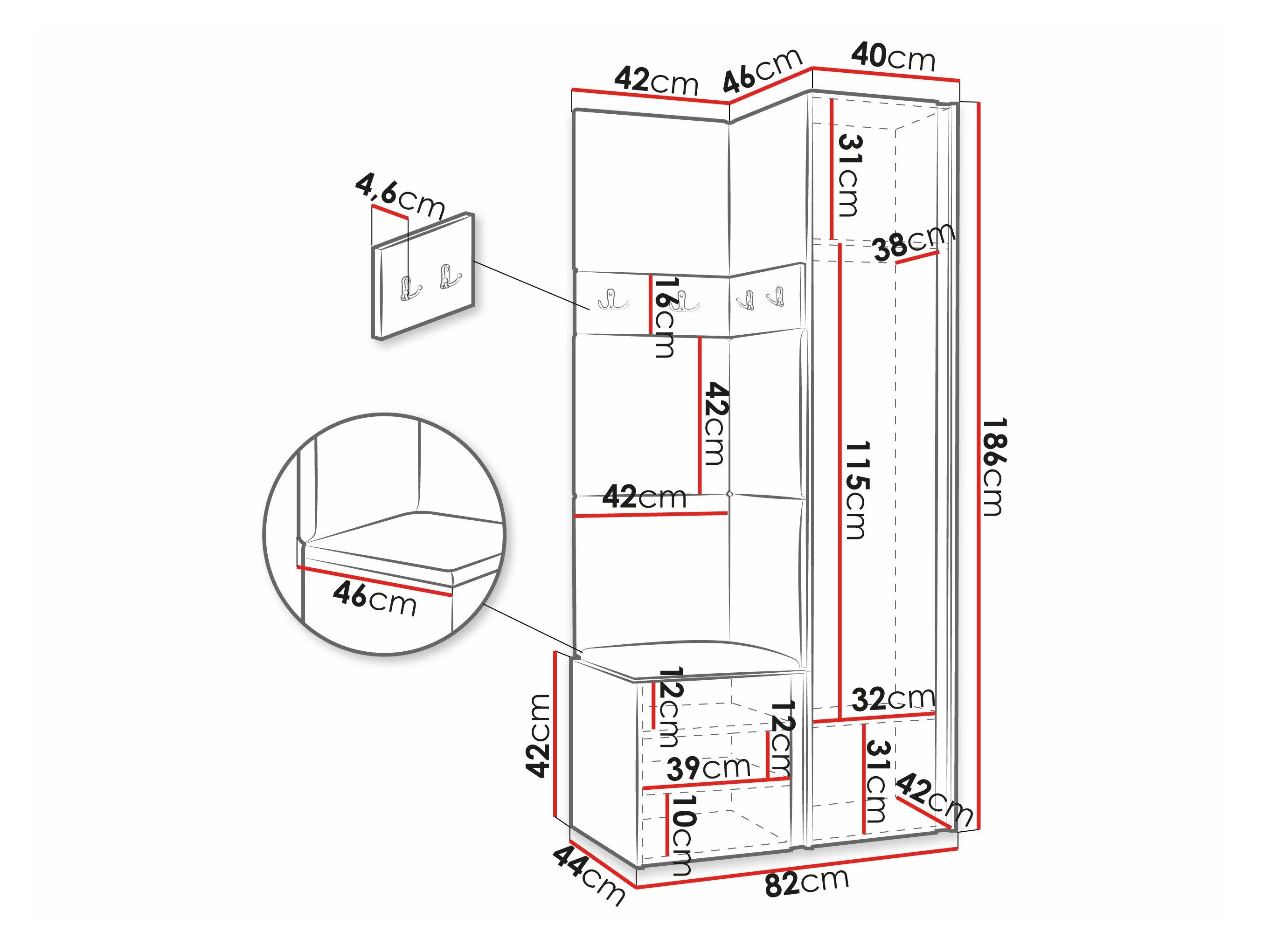 186 cm  42 cm  46 cm
