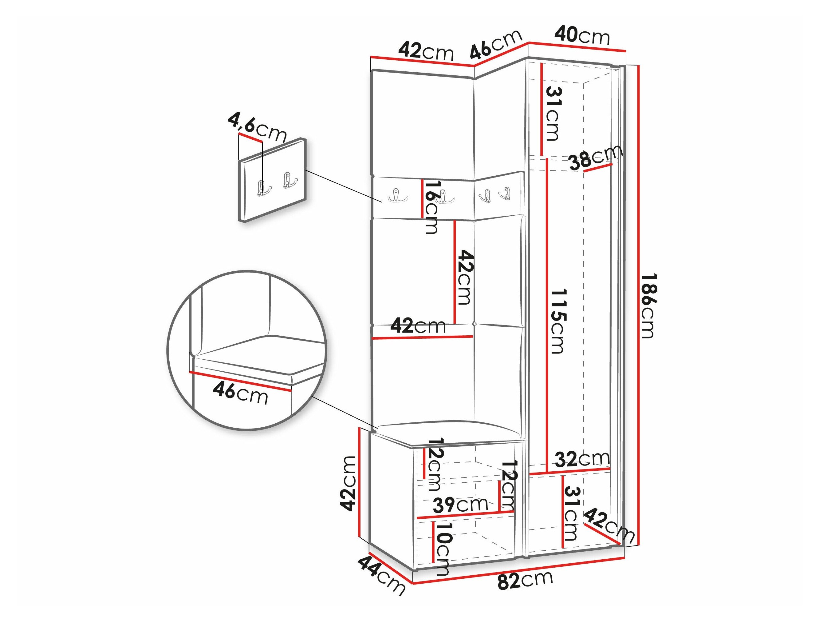 186 x 40 x 46 cm