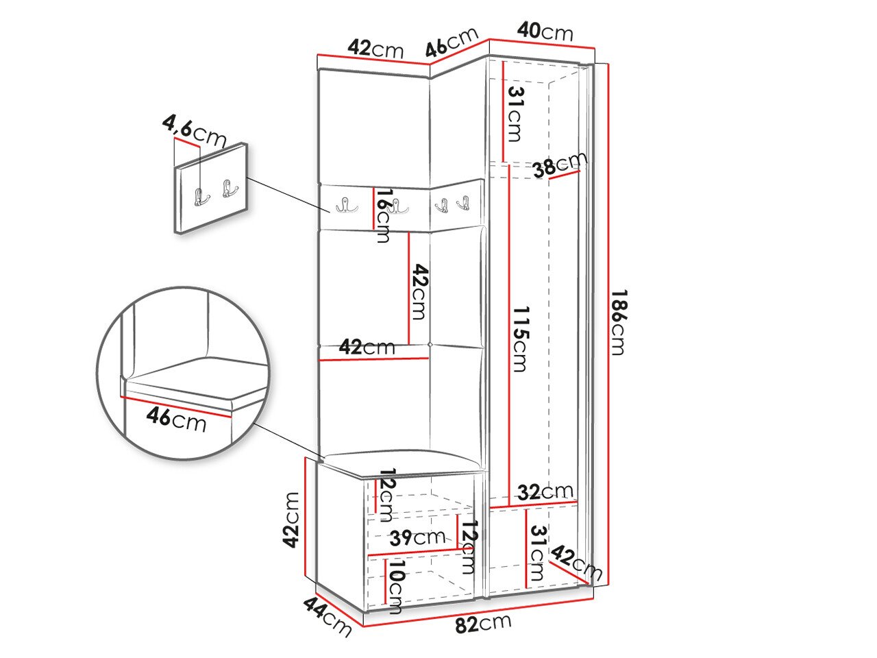Dimensions du portemanteau: