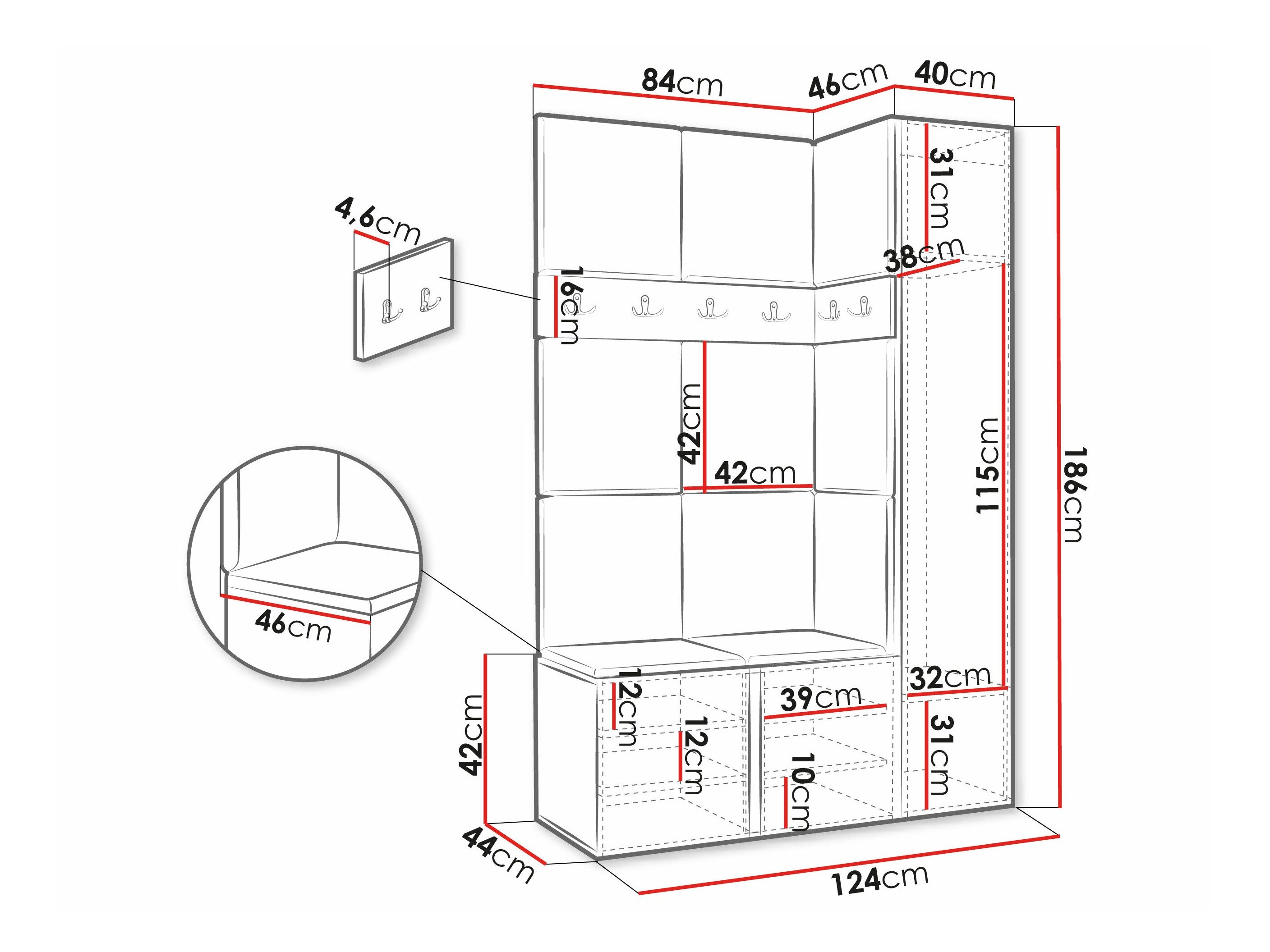 186 cm  42 cm  46 cm