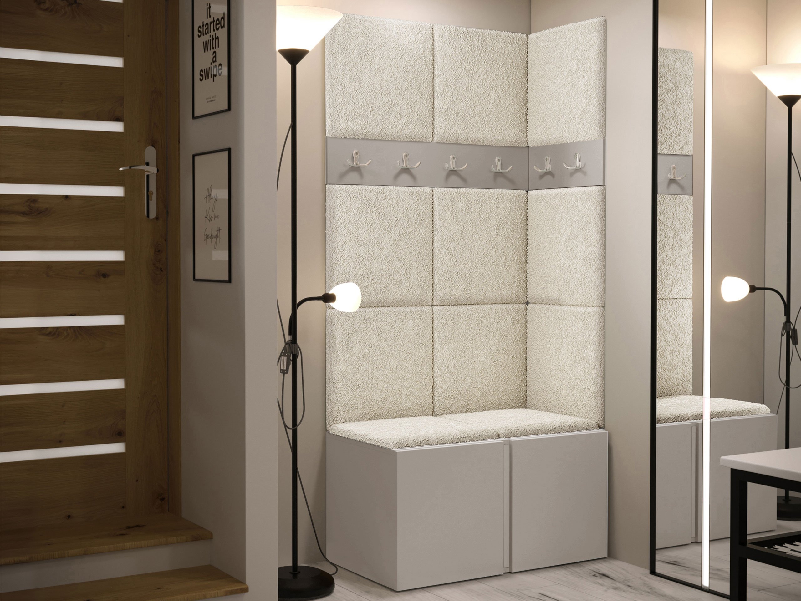 Panneau mural souple - un choix élégant et fonctionnel pour votre maison. Grâce à sa surface surélevée, le panneau crée un effet 3D unique. Ces panneaux souples apporteront du confort et de l'intimité, tout en constituant un élément décoratif. Grâce à leurs propriétés uniques, ils absorbent le son. Les panneaux peuvent être utilisés comme élément décoratif dans une pièce en étant séparée ou pour recouvrir entierement un mur. Le panneau est constitué d'une plaque de 8 mm d'épaisseur qui facilite le montage mural. La douceur et la forme sont assurées par un tissu synthétique de 3 cm d'épaisseur et le matériau qui le recouvre. Vous pouvez choisir un tissu du panneau dans une large gamme de couleurs, ainsi vous êtes sûr de trouver celui qui convient le mieux à votre décoration intérieur.