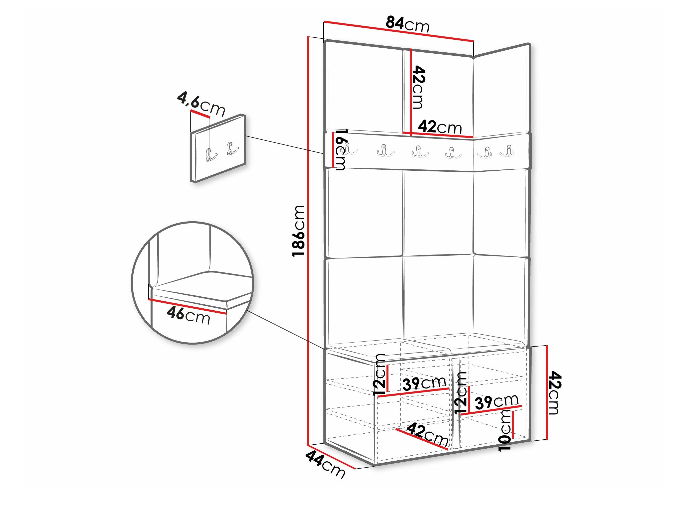 186 cm  42 cm  46 cm