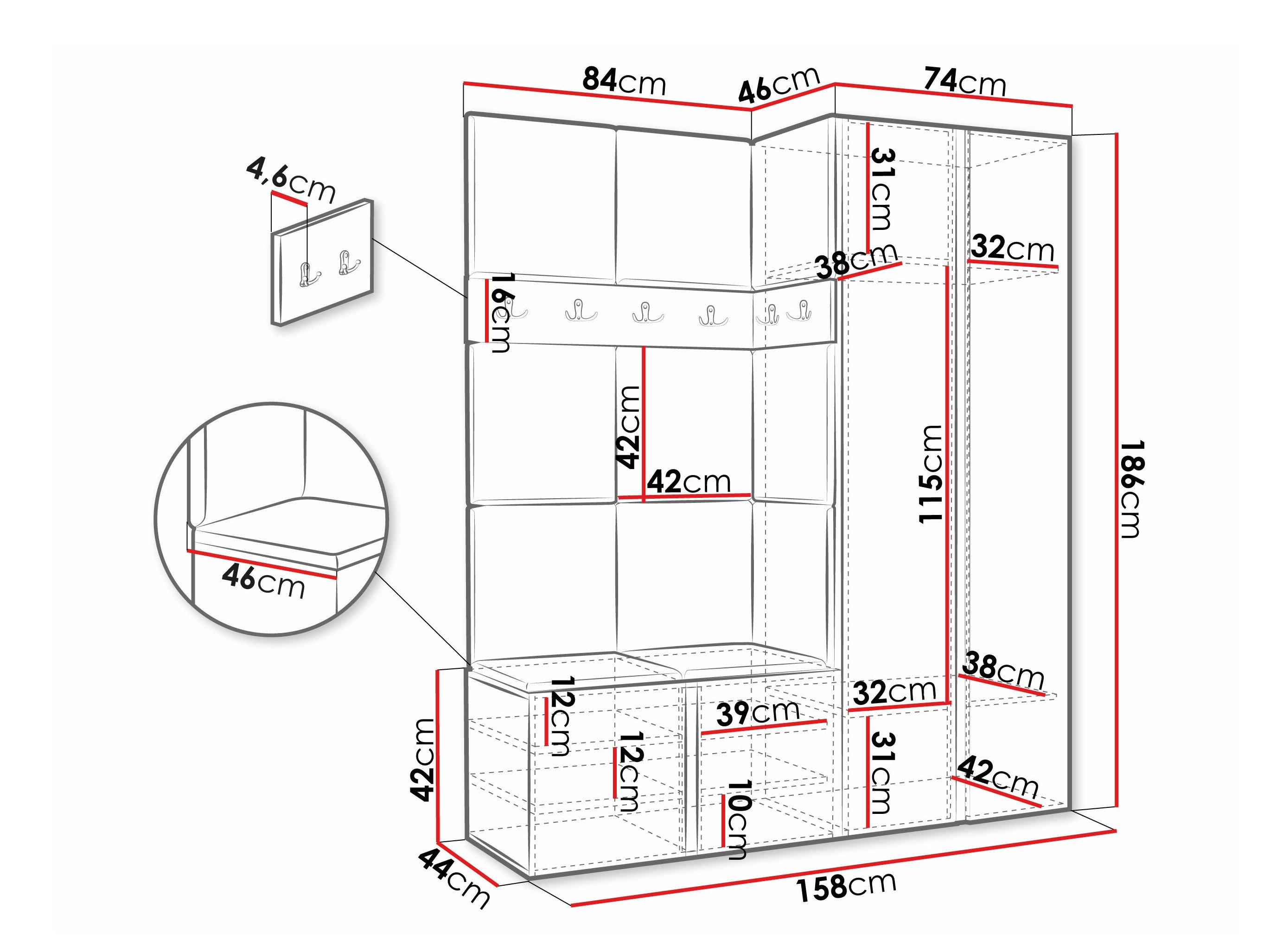 Dimensions du meuble à chaussures: