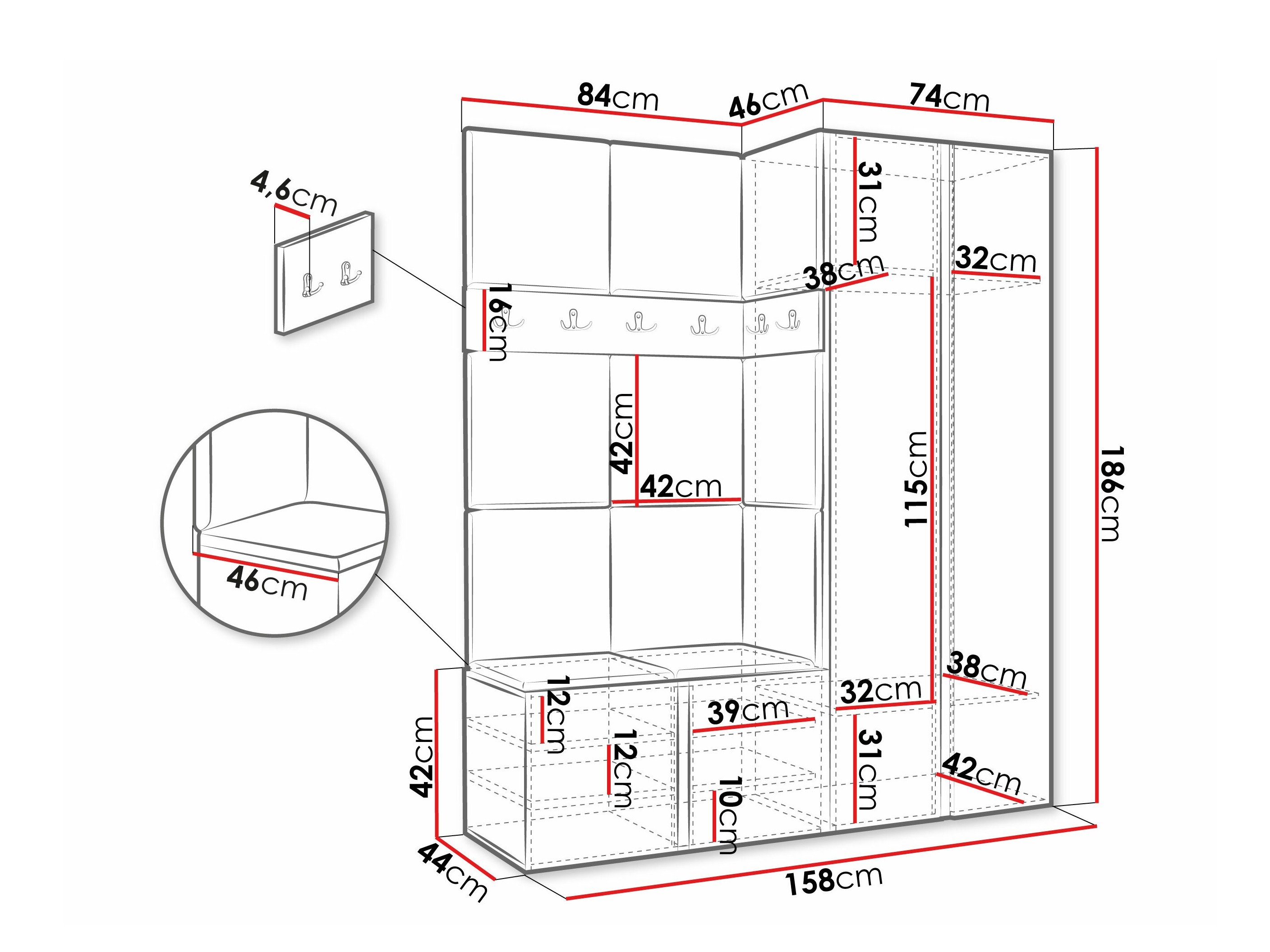 Dimensions du meuble à chaussures: