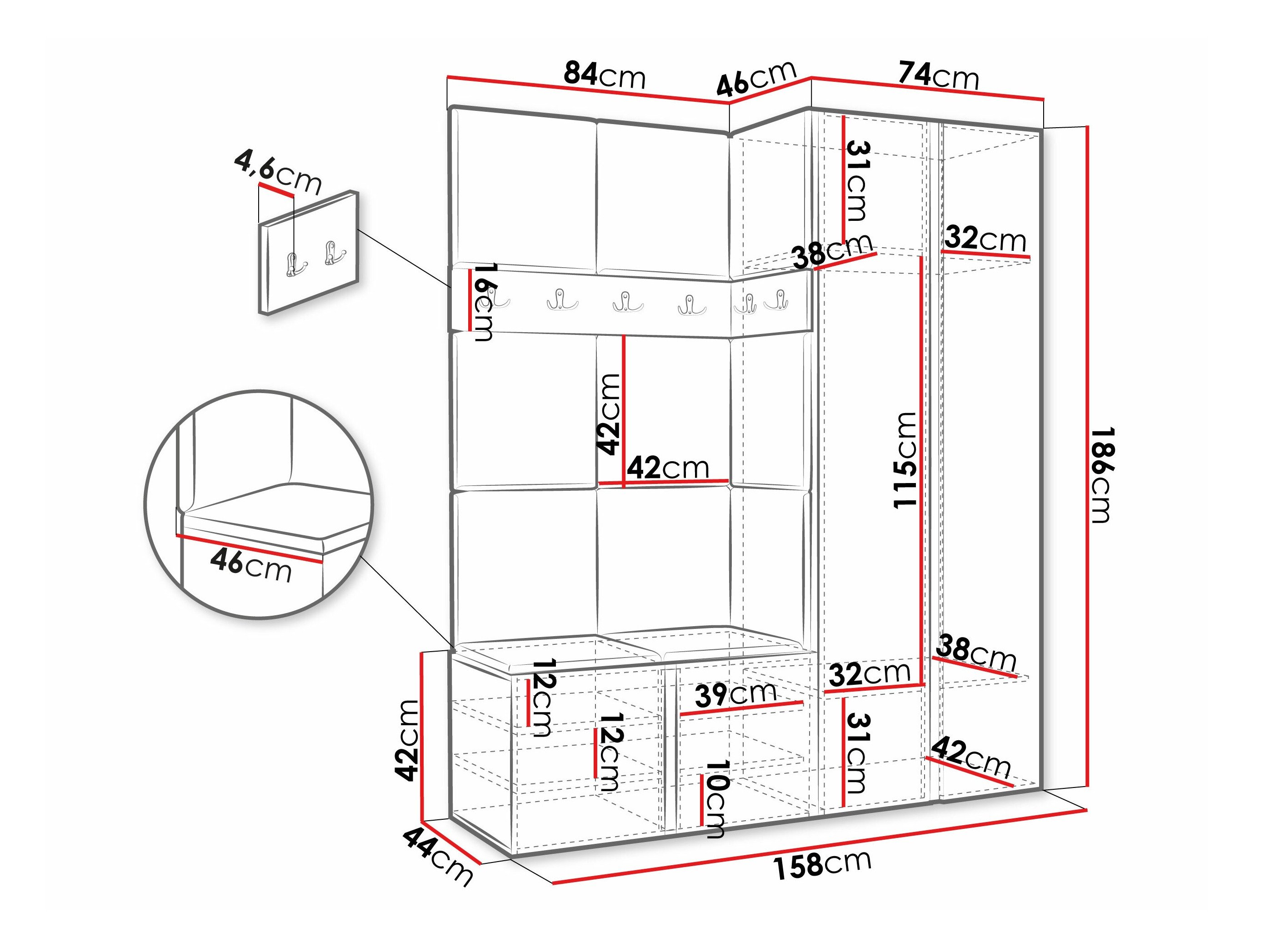 Dimensions du meuble à chaussures: