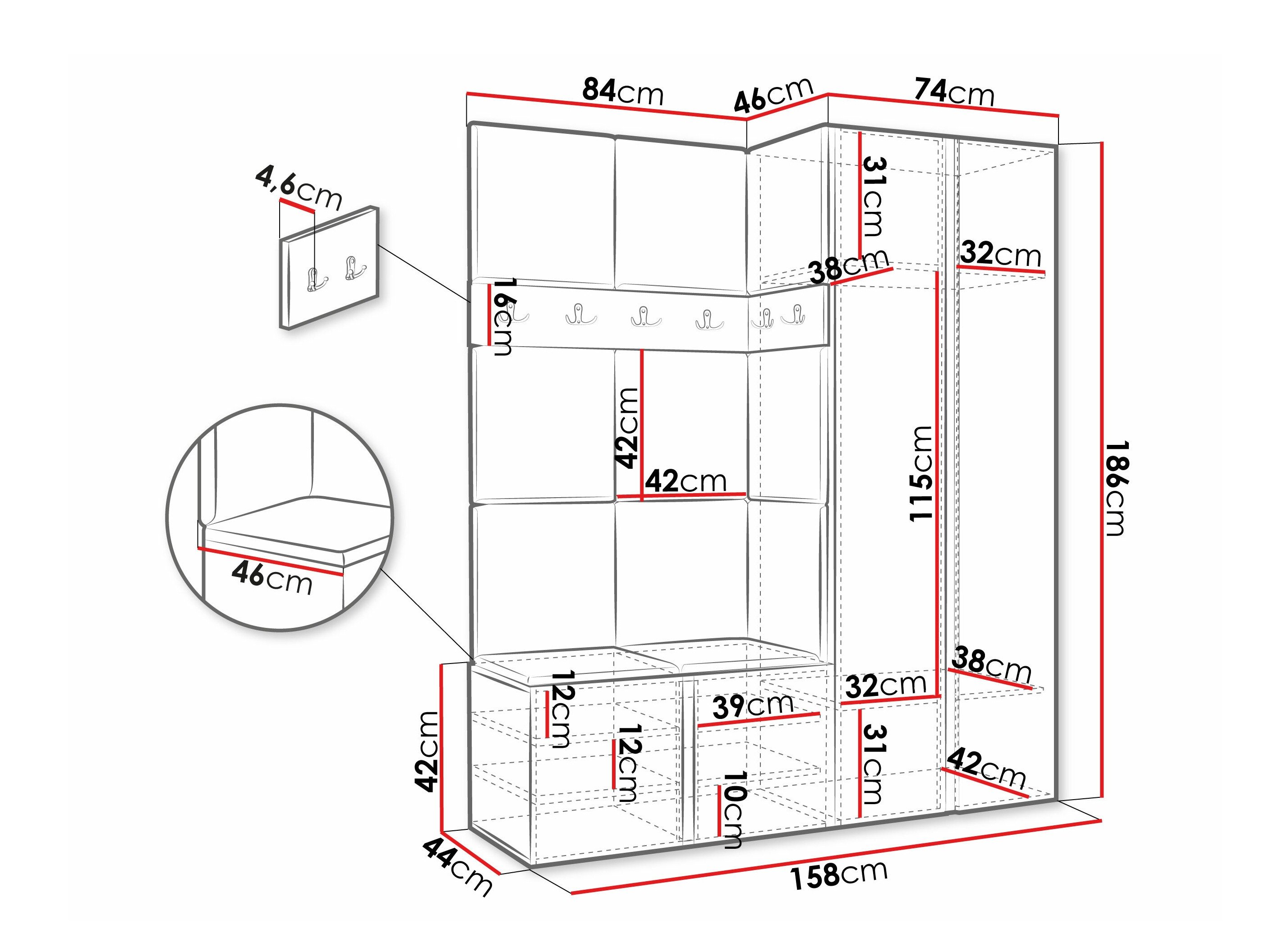 186 cm  42 cm  46 cm
