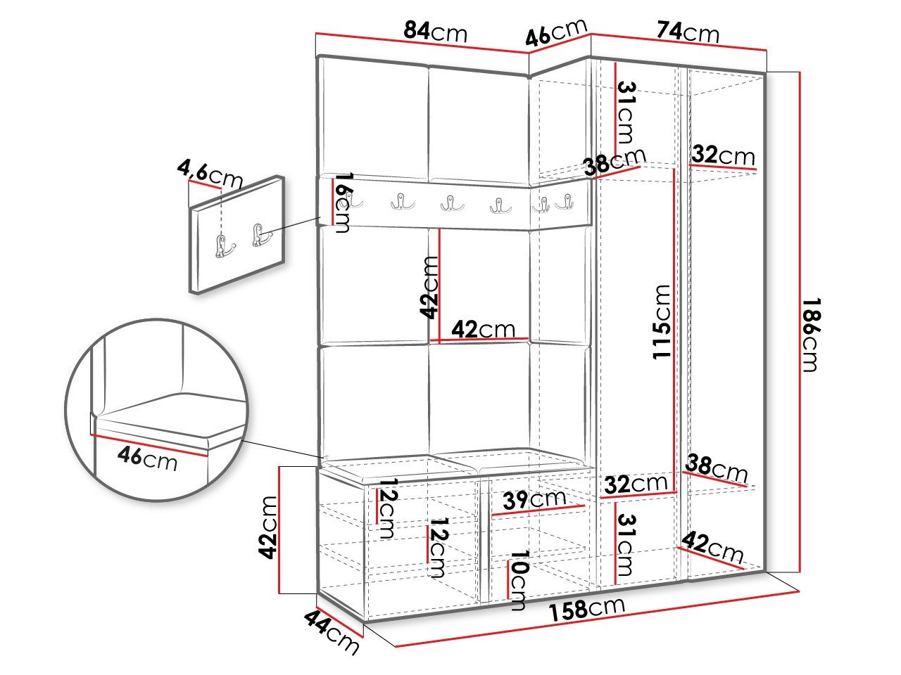 Dimensions du portemanteau: