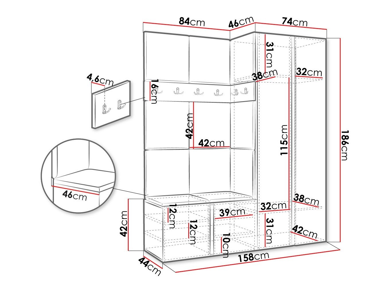 Dimensions du portemanteau: