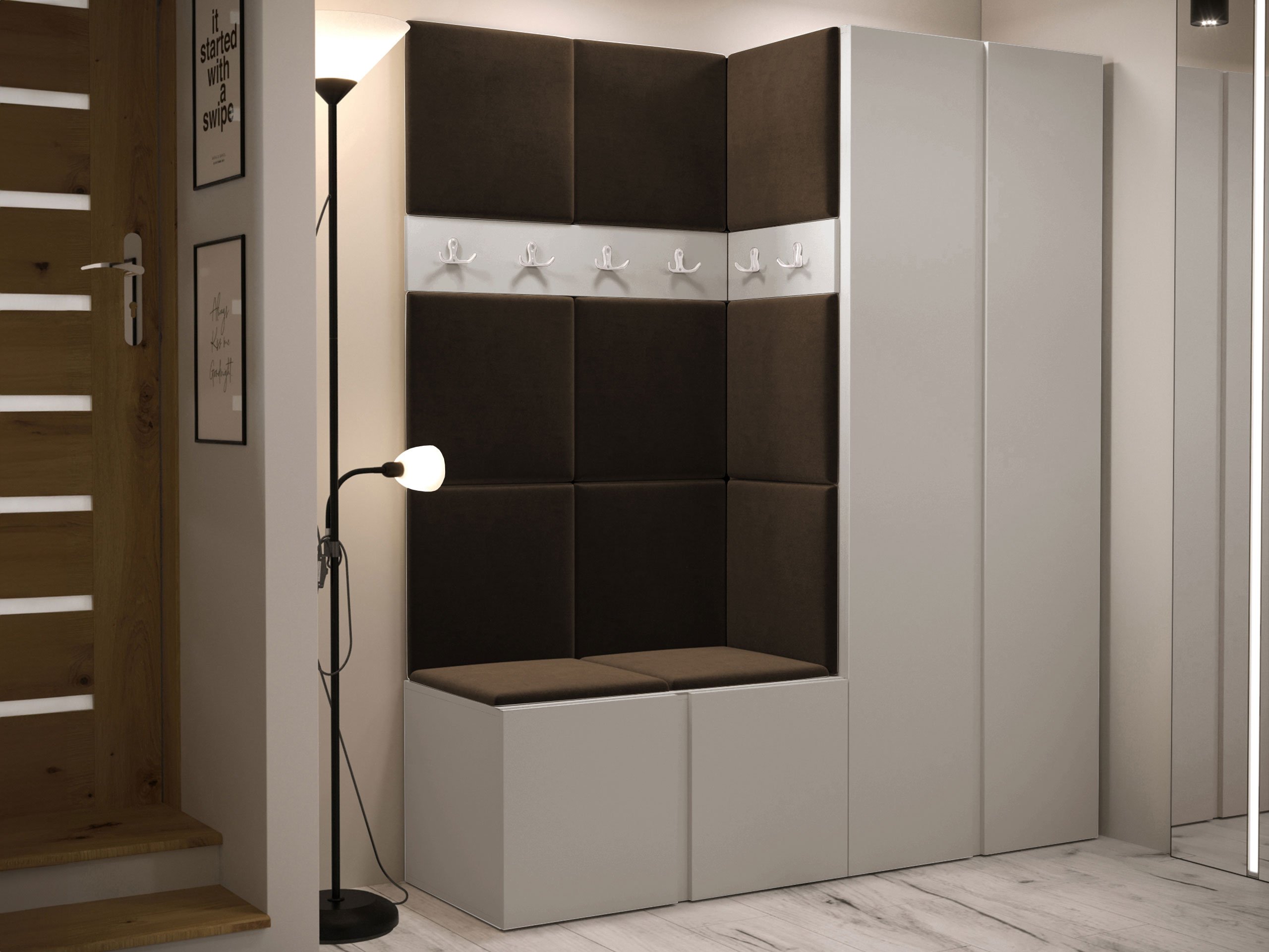 Panneau mural souple - un choix élégant et fonctionnel pour votre maison. Grâce à sa surface surélevée, le panneau crée un effet 3D unique. Ces panneaux souples apporteront du confort et de l'intimité, tout en constituant un élément décoratif. Grâce à leurs propriétés uniques, ils absorbent le son. Les panneaux peuvent être utilisés comme élément décoratif dans une pièce en étant séparée ou pour recouvrir entierement un mur. Le panneau est constitué d'une plaque de 8 mm d'épaisseur qui facilite le montage mural. La douceur et la forme sont assurées par un tissu synthétique de 3 cm d'épaisseur et le matériau qui le recouvre. Vous pouvez choisir un tissu du panneau dans une large gamme de couleurs, ainsi vous êtes sûr de trouver celui qui convient le mieux à votre décoration intérieur.