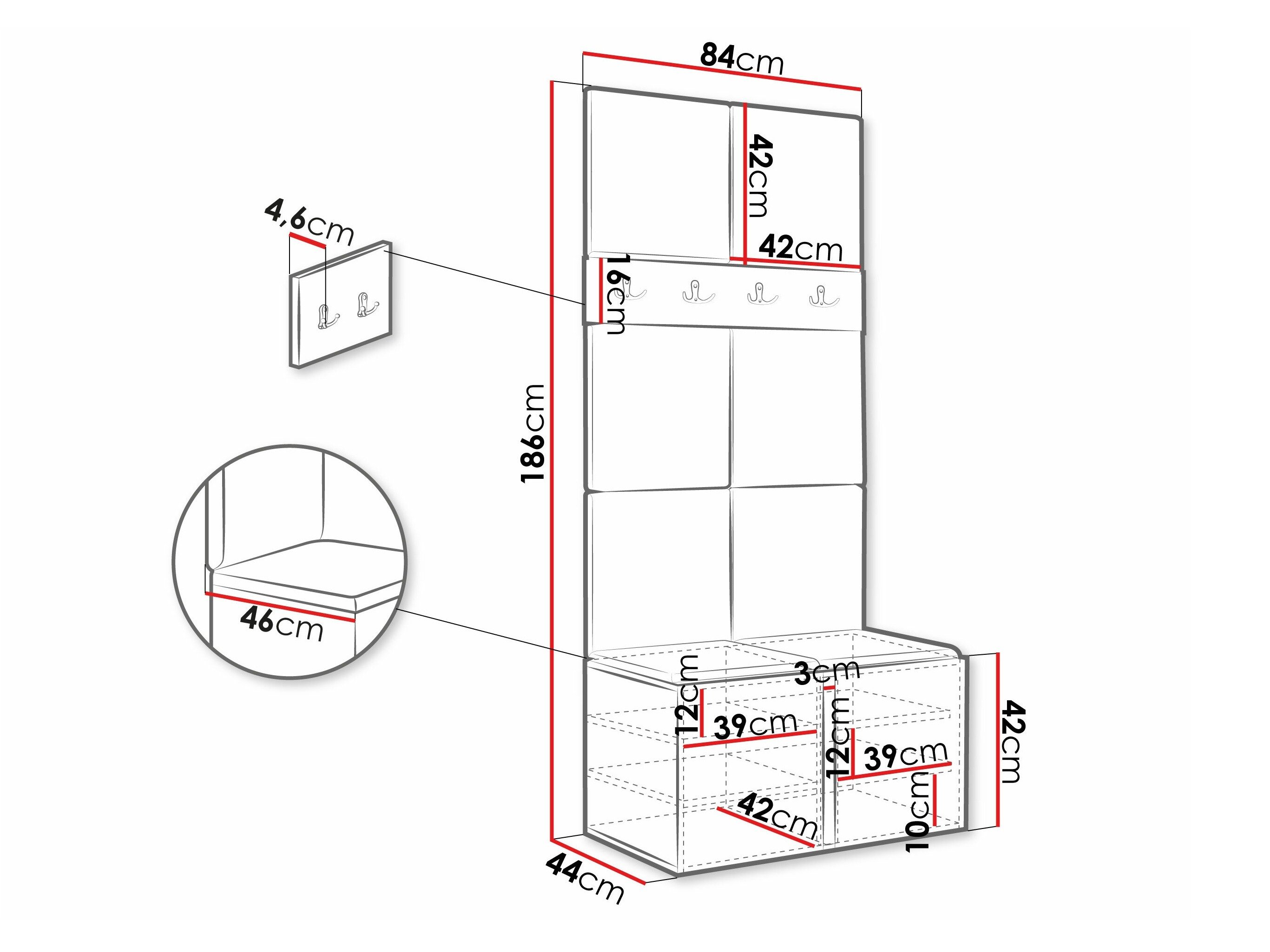 Dimensions du meuble à chaussures: